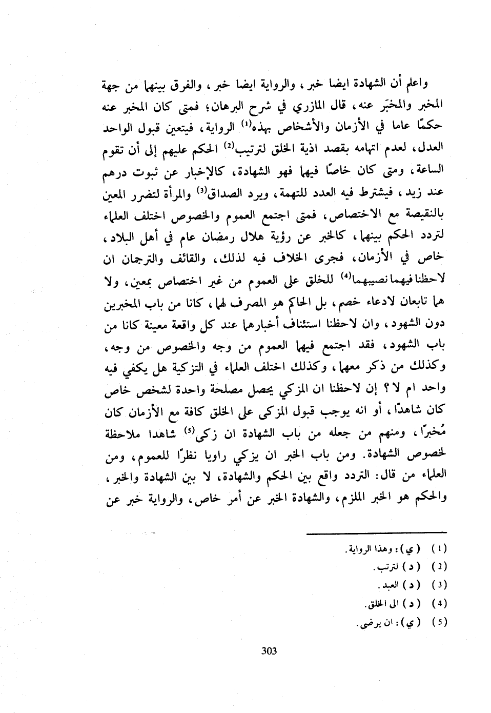وَاعْلَمْ أَنَّ الشَّهَادَةَ أَيْضًا خَبَرٌ وَالرِّوَايَةَ أَيْضًا خَبَرٌ وَالْفَرْقُ بَيْنَهُمَا مِنْ جِهَةِ الْمُخْبِرِ وَالْمُخْبَرِ عَنْهُ قَالَ الْمَازِرِيُّ فِي شَرْحِ الْبُرْهَانِ فَمَتَى كَانَ الْمُخْبَرُ عَنْهُ حُكْمًا عَامًّا فِي الْأَزْمَانِ والأشخاص بِهَذِهِ الرِّوَايَةِ فَيَتَعَيَّنُ قَبُولُ الْوَاحِدِ الْعَدْلِ لِعَدَمِ اتِّهَامِهِ بِقَصْدِ أَذِيَّةِ الْخَلْقِ لِتَرْتِيبِ الْحُكْمِ عَلَيْهِمْ إِلَى أَنْ تَقُومَ السَّاعَةُ وَمَتَى كَانَ خَاصًّا فِيهِمَا فَهُوَ الشَّهَادَةُ كَالْإِخْبَارِ عَنْ ثُبُوتِ دِرْهَمٍ عِنْدَ زيد فَيشْتَرط فِيهِ الْعدَد للتُّهمَةِ وَيرد الصَدَاق وَالْمَرْأَةُ لِتَضَرُّرِ الْمُعَيَّنِ بِالنَّقِيصَةِ مَعَ الِاخْتِصَاصِ فَمَتَى اجْتَمَعَ الْعُمُومُ وَالْخُصُوصُ اخْتَلَفَ الْعُلَمَاءُ لِتَرَدُّدِ الْحُكْمِ بَيْنَهُمَا كَالْخَبَرِ عَنْ رُؤْيَةِ هِلَالِ رَمَضَانَ عَامٌّ فِي أَهْلِ الْبِلَادِ خَاصٌّ فِي الْأَزْمَانِ فَجَرَى الْخِلَافُ فِيهِ لِذَلِكَ وَالْقَائِفُ وَالتَّرْجُمَانُ إِنْ لَاحَظْنَا فيهمَا نصيبهما لِلْخلقِ عَلَى الْعُمُومِ مِنْ غَيْرِ اخْتِصَاصٍ بِمُعَيَّنٍ وَلَا هُمَا تَابِعَانِ لِادِّعَاءِ خَصْمٍ بَلِ الْحَاكِمُ هُوَ الْمُصَرِّفُ لَهُمَا كَانَا مِنْ بَابِ الْمُخْبِرِينَ دُونَ الشُّهُودِ وَإِنْ لَاحَظْنَا اسْتِئْنَافَ أَخْبَارِهِمَا عِنْدَ كُلِّ وَاقِعَةٍ مُعَيَّنَةٍ كَانَا مِنْ بَابِ الشُّهُودِ فَقَدِ اجْتَمَعَ فِيهِمَا الْعُمُومُ مِنْ وَجْهٍ وَالْخُصُوصُ مِنْ وَجْهٍ وَكَذَلِكَ مَنْ ذُكِرَ مَعَهُمَا وَكَذَلِكَ اخْتَلَفَ الْعلمَاء فِي التَّزْكِيَة هَل يَكْفِي فِيهِ وَاحِدٌ أَمْ لَا إِنْ لَاحَظْنَا أَنَّ الْمُزَكِّيَ يحصل مصلحَة وَاحِدَةً لِشَخْصٍ خَاصٍّ كَانَ شَاهِدًا أَوْ أَنَّهُ يُوجِبُ قَبُولَ الْمُزَكِّي عَلَى الْخَلْقِ كَافَّةً مَعَ الْأَزْمَانِ كَانَ مُخْبِرًا وَمِنْهُمْ مَنْ جَعَلَهُ مِنْ بَابِ الشَّهَادَةِ إِنْ زَكَّى شَاهِدًا مُلَاحَظَةً لِخُصُوصِ الشَّهَادَة وَمن بَاب الْخَبَر أَن يُزكي رَاوِيًا نَظَرًا لِلْعُمُومِ وَمِنَ الْعُلَمَاءِ مَنْ قَالَ التَّرَدُّدُ وَاقِعٌ بَيْنِ الْحُكْمِ وَالشَّهَادَةِ لَا بَيْنَ الشَّهَادَةِ وَالْخَبَرِ وَالْحُكْمُ هُوَ الْخَبَرُ الْمُلْزِمُ وَالشَّهَادَةُ الْخَبَرُ عَنْ أَمْرٍ خَاصٍّ وَالرِّوَايَةُ خَبَرٌ عَنْ