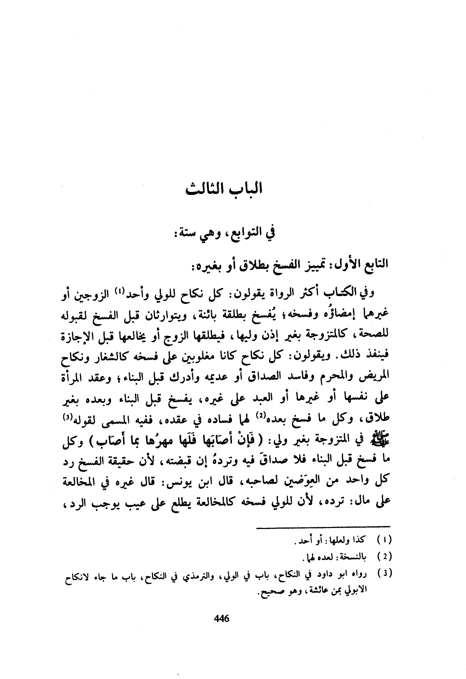 الْبَابُ الثَّالِثُ فِي التَّوَابِعِ وَهِيَ سِتَّةٌ)