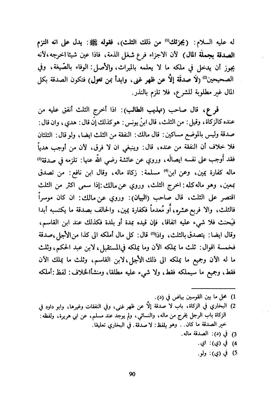 لَهُ عَلَيْهِ السَّلَامُ يُجْزَئُكَ مِنْ ذَلِكَ الثُّلُثُ فَقَوله - صَلَّى اللَّهُ عَلَيْهِ وَسَلَّم َ - يَدُلُّ عَلَى أَنَّهُ الْتَزَمَ الصَّدَقَةَ بِجُمْلَةِ الْمَالِ لِأَنَّ الْإِجْزَاءَ فَرْعُ شُغْلِ الذِّمَّةِ فَإِذَا عَيَّنَ شَيْئًا أَخْرَجَهُ لِأَنَّهُ يَجُوزُ أَنْ يَدْخُلَ فِي مِلْكِهِ مَا لَا يَعْلَمُهُ بِالْمِيرَاثِ وَالْأَصْلُ الْوَفَاءُ بالصيغة وَفِي الصَّحِيحَيْنِ لَا صَدَقَةَ إِلَّا عَنْ ظَهْرِ غِنًى وَابْدَأْ بِمَنْ تَعُولُ فَتَكُونُ الصَّدَقَةُ بِكُلِّ الْمَالِ غَيْرَ مَطْلُوبَةٍ لِلشَّرْعِ فَلَا تَلْزَمُ بِالنَّذْرِ فَرْعٌ قَالَ صَاحِبُ تَهْذِيبِ الطَّالِبِ إِذَا أَخْرَجَ الثُّلُثَ أَنْفَقَ عَلَيْهِ مِنْ عِنْدِهِ كَالزَّكَاةِ وَقِيلَ مِنَ الثُّلُثِ قَالَ ابْنُ يُونُسَ هُوَ كَذَلِكَ إِنْ قَالَ هَدْيٌ وَإِنْ قَالَ صَدَقَةٌ وَلَيْسَ بِالْمَوْضِعِ مَسَاكِينٌ قَالَ مَالِكٌ النَّفَقَةُ مِنَ الثُّلُثِ أَيْضًا وَلَوْ قَالَ الثُّلُثَانِ فَلَا خِلَافَ أَنَّ النَّفَقَةَ مِنْ عِنْدِهِ قَالَ وَيَنْبَغِي أَنْ لَا فَرْقَ لِأَنَّ مَنْ أَوْجَبَ هَدْيًا فَقَدْ أَوْجَبَ عَلَى نَفْسِهِ إِيصَالَهُ وَرُوِيَ عَنْ عَائِشَةَ رَضِيَ اللَّهُ عَنْهَا تَلْزَمُهُ فِي صَدَقَةِ مَالِهِ كَفَّارَةُ يَمِينٍ وَعَنِ ابْنِ مَسْلَمَةَ زَكَاةُ مَالِهِ وَقَالَ ابْنُ نَافِعٍ مَنْ تَصَدَّقَ بِمُعَيَّنٍ وَهُوَ مَالُهُ كُلُّهُ أَخْرَجَ الثُّلُثَ وَرُوِيَ عَنْ مَالك إِذا سمى أَكثر من الثُّلُث اقتصرعلى الثُّلُثِ قَالَ صَاحِبُ الْبَيَانِ وَرُوِيَ عَنْ مَالِكٍ إِنْ كَانَ مُوسِرًا فَالثُّلُثُ وَإِلَّا فَرُبُعُ عُشْرِهِ أَوْ مُعْدِمًا فَكَفَّارَةُ يَمِينٍ وَالْحَالِفُ بِصَدَقَةِ مَا يَكْتَسِبُهُ أَبَدًا فَيَحْنَثُ فَلَا شَيْءَ عَلَيْهِ اتِّفَاقًا فَإِنْ قَيَّدَهُ بِمُدَّةٍ أَوْ بَلْدَةٍ فَكَذَلِكَ عِنْدَ ابْنِ الْقَاسِمِ وَقَالَ أَيْضًا يَتَصَدَّقُ بِالثُّلُثِ وَإِذَا قَالَ كُلُّ مَالٍ أَمْلِكُهُ إِلَى كَذَا مِنَ الْأَجَلِّ صَدَقَةٌ فَخَمْسَةُ أَقْوَالٍ ثُلُثُ مَا يَمْلِكُهُ الْآنَ وَمَا يَمْلِكُهُ فِي الْمُسْتَقْبَلِ لِابْنِ عَبْدِ الحكم وَثلث مَا لَهُ الْآنَ وَجَمِيعُ مَا يَمْلِكُهُ إِلَى ذَلِكَ الْأَجَلِ لِابْنِ الْقَاسِمِ وَثُلُثُ مَا يَمْلِكُ الْآنَ فَقَطْ وَجَمِيعُ مَا سَيَمْلِكُهُ فَقَطْ وَلَا شَيْءَ عَلَيْهِ مُطْلَقًا وَمَنْشَأُ الْخِلَافِ لَفْظُ أَمْلِكُهُ