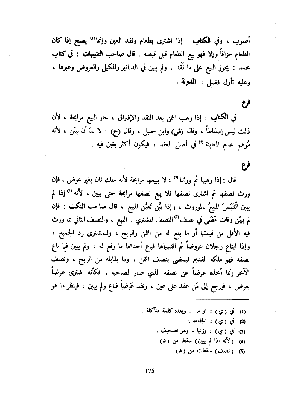 أَصْوَبُ وَفِي الْكِتَابِ: إِذَا اشْتَرَى بِطَعَامٍ وَنَقَدَ الْعَيْنَ وَإِنَّمَا يَصِحُّ إِذَا كَانَ الطَّعَامُ جِزَافًا وَإِلَّا فَهُوَ بَيْعُ الطَّعَامِ قَبْلَ قَبْضِهِ قَالَ صَاحِبُ التَّنْبِيهَاتِ: فِي كِتَابِ مُحَمَّدٍ: يَجُوزُ الْبَيْعُ عَلَى مَا نَقَدَ وَلَمْ يُبَيِّنْ فِي الدَّنَانِيرِ وَالْمَكِيلِ وَالْعَرُوضِ وَغَيْرِهَا وَعَلَيْهِ تَأَوَّلَ فَضْلَ: الْمُدَوَّنَةِ
