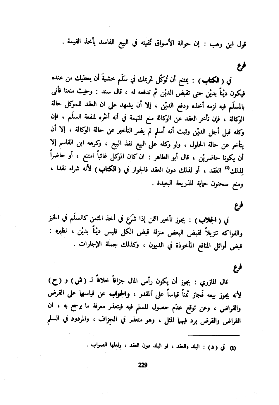 فَرْعٌ قَالَ الْمَازِرِيُّ: يَجُوزُ أَنْ يَكُونَ رَأْسُ الْمَالِ جِزَافًا خِلَافًا لِ (ش) و (ح) لِأَنَّهُ يَجُوزُ بَيْعُهُ فَجَازَ ثَمَنًا قِيَاسا على الْمُقدر وَالْجَوَاب عَن قياسمها عَلَى الْقَرْضِ وَالْقِرَاضِ وَعَنْ تَوَقُّعِ عَدَمِ حُصُولِ الْمُسْلَمِ فِيهِ فَيَتَعَذَّرُ مَعْرِفَةُ مَا يَرْجِعُ بِهِ أَنَّ الْقِرَاضَ وَالْقَرْضَ يَرِدُ فِيهِمَا الْمِثْلُ وَهُوَ مُتَعَذر فِي الْجزَاف الْمَرْدُود فِي السّلم