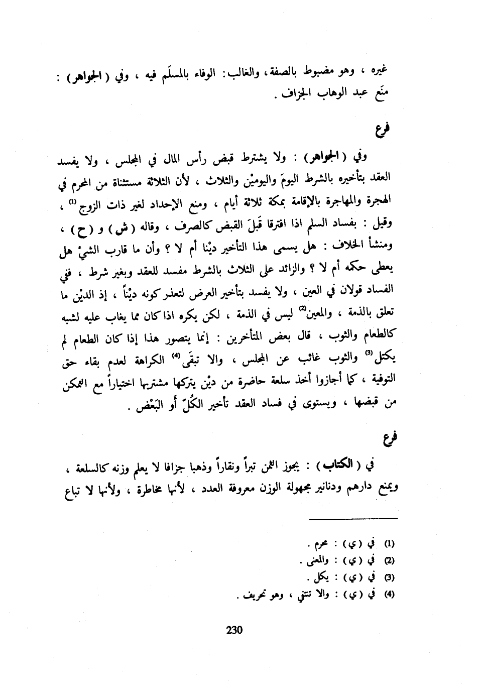 غَيْرُهُ وَهُوَ مَضْبُوطٌ بِالصِّفَةِ وَالْغَالِبُ: الْوَفَاءُ بِالْمُسْلَمِ فِيهِ وَفِي (الْجَوَاهِرِ) : مَنَعَ عَبْدُ الْوَهَّابِ الْجِزَافَ