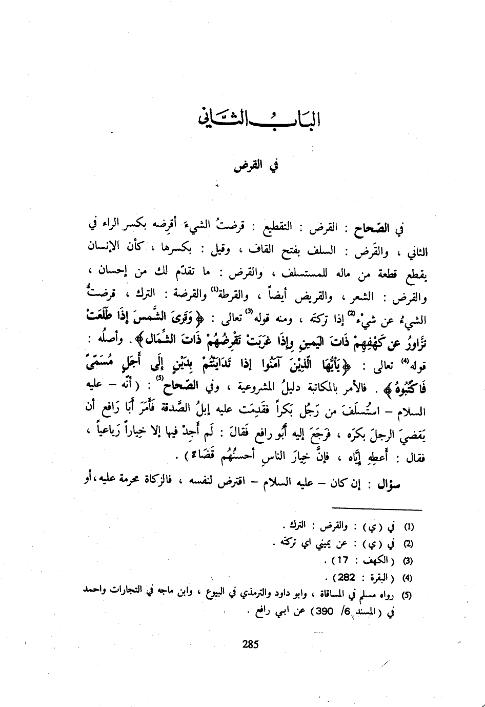 (الْبَاب الثَّانِي فِي الْقَرْض)