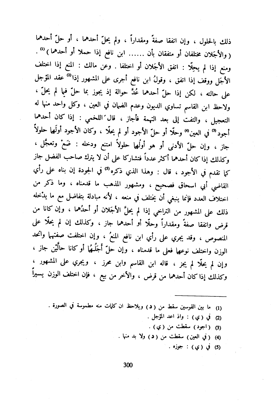 ذَلِكَ بِالْحُلُولِ وَإِنِ اتَّفَقَا صِفَةً وَمِقْدَارًا وَلَمْ يَحِلَّ أَحَدُهُمَا أَوْ حَلَّ أَحَدُهُمَا (وَالْأَجَلَانِ مُخْتَلِفَانِ أَو متفقان بِأَن ... ابْن نَافِع إِذا حملا أَوْ أَحَدُهُمَا) وَمَنَعَ إِذَا لَمْ يَحِلَّا: اتَّفَقَ الْأَجَلَانِ أَوِ اخْتَلَفَا وَعَنْ مَالِكٍ: الْمَنْعُ إِذَا اخْتَلَفَ الْأَجَلُ وَوَقَفَ إِذَا اتَّفَقَ وَقَوْلُ ابْنِ نَافِعٍ أَجْرَى عَلَى الْمَشْهُورِ إِذَا عَقَدَ الْمُؤَجِّلُ عَلَى حَالَتِهِ لَكَنْ إِذَا حَلَّ أَحَدُهُمَا عُد حِوَالَةً إِذْ يَجُوزُ بِمَا حَلَّ فِيمَا لَمْ يَحِلَّ وَلَاحَظَ ابْنُ الْقَاسِمِ تَسَاوِيَ الدُّيُونِ وَعَدَمَ الضَّمَانِ فِي الْعَيْنِ وَكُلُّ وَاحِدٍ مِنْهَا لَهُ التَّعْجِيلُ وَالْتَفَتَ إِلَى بُعْدِ التُّهْمَةِ فَأَجَازَ قَالَ اللَّخْمِيُّ: إِذَا كَانَ أَحَدُهُمَا أَجْوَدَ فِي الْعَيْنِ وَحَلَّا أَوْ حَلَّ الْأَجْوَدُ أَوْ لَمْ يَحِلَّا وَكَانَ الْأَجْوَدُ أَوَّلَهُمَا حُلُولًا جَازَ وَإِنْ حَلَّ الْأَدْنَى أَوْ هُوَ أَوَّلُهُمَا حُلُولًا امْتَنَعَ وَدَخَلَهُ: ضَعْ وَتَعَجَّلْ وَكَذَلِكَ إِذَا كَانَ أَحَدُهُمَا أَكْثَرَ عَدَدًا فَتَشَارَكَا عَلَى أَنْ لَا يَتْرُكَ صَاحِبُ الْفَضْلِ جَازَ كَمَا تَقَدَّمَ فِي الْأَجْوَدِ قَالَ: وَهَذَا الَّذِي ذَكَرَهُ فِي الْجَوْدَةِ إِنْ بَنَاهُ عَلَى رَأْيِ الْقَاضِي أَبِي إِسْحَاقَ فَصَحِيحٌ وَمَشْهُورُ الْمَذْهَب مَا قدمْنَاهُ وَمَا ذكر مِنَ اخْتِلَافِ الْعَدَدِ فَإِنِّمَا يَنْبَغِي أَنْ يُخْتَلَفَ فِي مَنْعِهِ لِأَنَّهُ مُبَادَلَةٌ بِتَفَاضُلٍ مَعَ مَا يَدْخُلُهُ ذَلِكَ عَلَى الْمَشْهُورِ مِنَ التَّرَاخِي إِذَا لَمْ يَحِلَّ الْأَجَلَانِ أَوْ أَحَدُهُمَا وَإِنْ كَانَا من قرض واتفاقا صِفَةً وَمِقْدَارًا وَحَلَّا أَوْ أَحَدُهُمَا جَازَ وَكَذَلِكَ إِنْ لَمْ يَحِلَّا عَلَى الْمَنْصُوصِ وَقَدْ يَجْرِي عَلَى رَأْيِ ابْنِ نَافِعٍ الْمَنْعُ وَإِنِ اخْتَلَفَتْ صِفَتُهُمَا وَاتَّحَدَ الْوَزْنُ وَاخْتَلَفَ نَوْعُهُمَا فَعَلَى مَا قَدَّمْنَاهُ وَإِنْ حَلَّ أَجَلُهُمَا أَوْ كَانَا حَالَّيْنِ جَازَ وَإِنْ لَمْ يَحِلَّا لَمْ يَجُزْ قَالَهُ ابْنُ الْقَاسِمِ وَابْنُ مُحْرِزٍ وَيَجْرِي عَلَى الْمَشْهُورِ وَكَذَلِكَ إِذَا كَانَ أَحَدُهُمَا مِنْ قَرْضٍ وَالْآخَرُ مِنْ بَيْعٍ فَإِنِ اخْتَلَفَ الْوَزْنُ يَسِيرًا