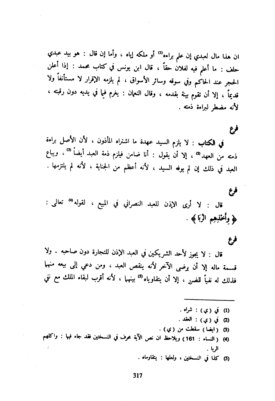 فَرْعٌ قَالَ: لَا أَرَى الْإِذْنَ لِلْعَبْدِ النَّصْرَانِيِّ فِي البيع لقَوْله تَعَالَى {وَأَخذهم الرِّبَا}