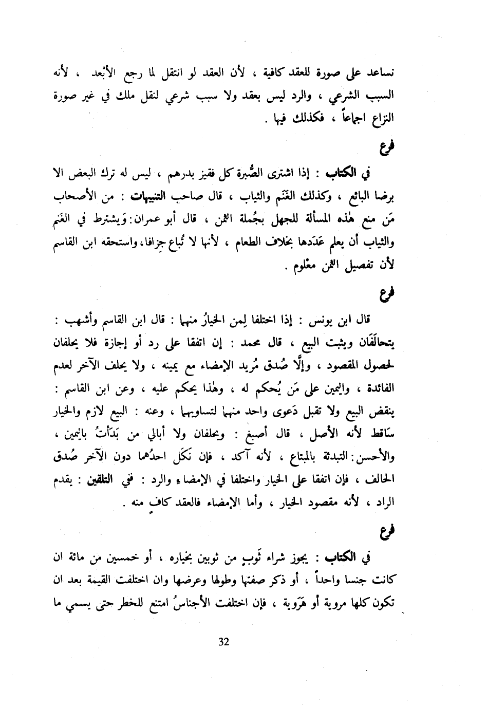 فِي الْكِتَابِ إِذَا اشْتَرَى الصُّبْرَةَ كل فَقير بِدِرْهَمٍ لَيْسَ لَهُ تَرْكُ الْبَعْضِ إِلَّا بِرِضَا الْبَائِعِ وَكَذَلِكَ الْغَنَمُ وَالثِّيَابُ قَالَ صَاحِبُ التَّنْبِيهَاتِ مِنَ الْأَصْحَابِ مَنْ مَنَعَ هَذِهِ الْمَسْأَلَةَ لِلْجَهْلِ بِجُمْلَةِ الثَّمَنِ قَالَ أَبُو عِمْرَانَ وَيُشْتَرَطُ فِي الْغَنَمِ وَالثِّيَابِ أَنْ يُعْلَمَ عَدَدُهَا بِخِلَافِ الطَّعَامِ لِأَنَّهَا لَا تبَاع جزَافا واستحقه ابْنُ الْقَاسِمِ لِأَنَّ تَفْصِيلَ الثَّمَنِ مَعْلُومٌ
