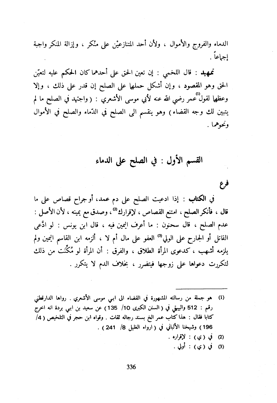 الْقِسْمُ الْأَوَّلُ: فِي الصُّلْحِ عَلَى الدِّمَاءِ