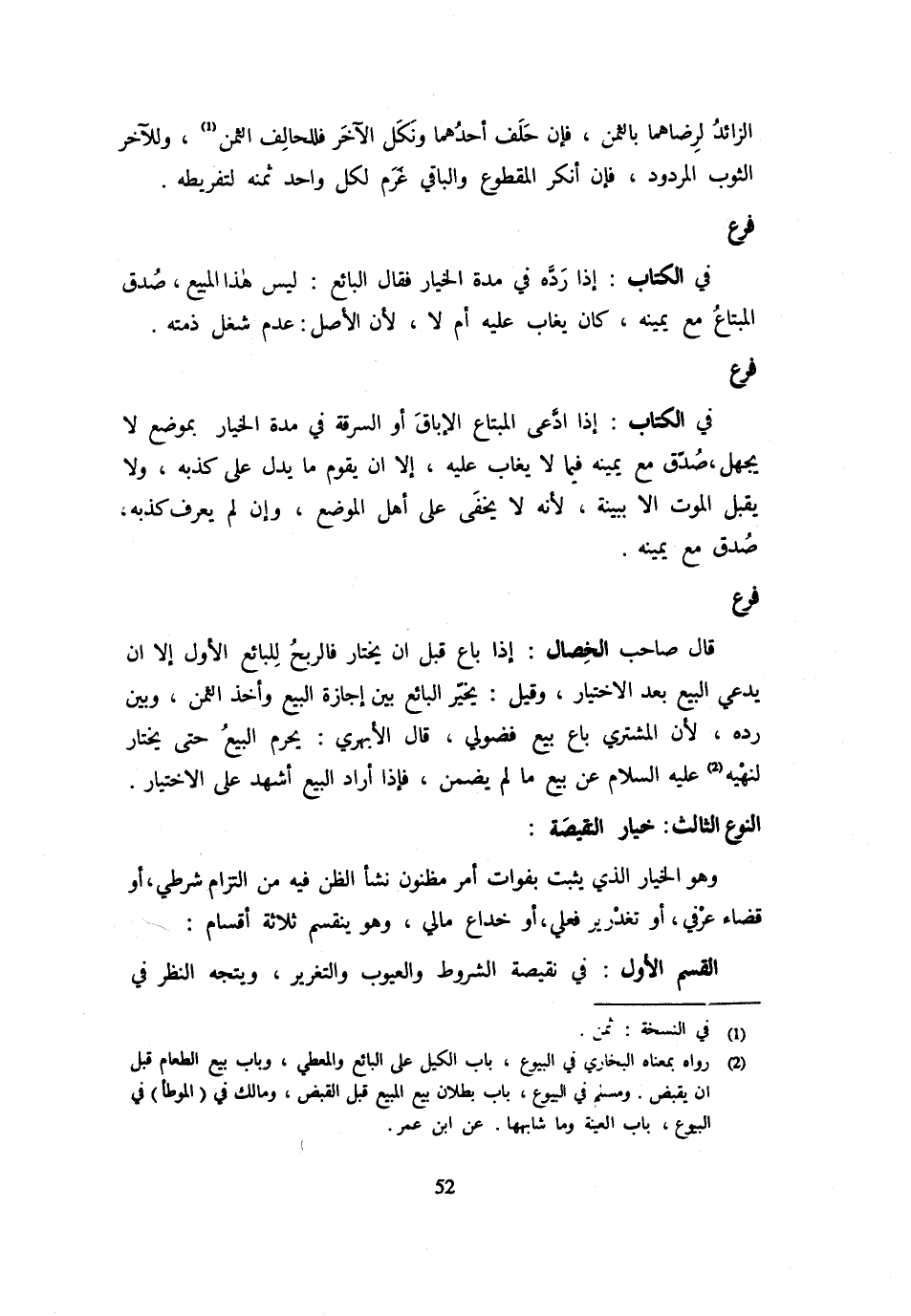وَهُوَ الْخِيَارُ الَّذِي يَثْبُتُ بِفَوَاتِ أَمْرٍ مَظْنُونٍ نَشَأَ الظَّنُّ فِيهِ مِنَ الْتِزَامٍ شَرْطِيٍّ أَوْ قَضَاء عرفي أَو تغدرير فعلي أَو خداع مَالِي وَهُوَ يَنْقَسِمُ ثَلَاثَةَ أَقْسَامٍ الْقِسْمُ الْأَوَّلُ فِي نَقِيصَةِ الشُّرُوطِ وَالْعُيُوبِ وَالتَّغْرِيرِ وَيَتَّجِهُ النَّظَرُ فِي