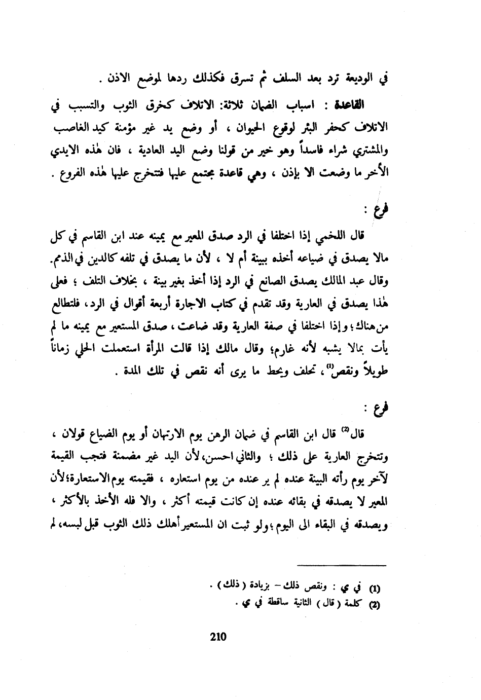 الْقَاعِدَة - أَسْبَابُ الضَّمَانِ ثَلَاثَةٌ الْإِتْلَافُ كَخَرْقِ الثَّوْبِ وَالتَّسَبُّبِ فِي الْإِتْلَافِ كَحَفْرِ الْبِئْرِ لِوُقُوعِ الْحَيَوَانِ أَوْ وَضْعِ يَدٍ غَيْرِ مُؤَمَّنَةٍ كَيْدِ الْغَاصِبِ وَالْمُشْتَرِي شِرَاءً فَاسِدًا وَهُوَ خَيْرٌ مِنْ قَوْلِنَا وَضْعُ الْيَدِ الْعَادِيَّةِ فَإِنَّ هَذِهِ الْأَيْدِيَ الْأُخَرَ مَا وُضِعَتْ إِلَّا بِإِذْنٍ وَهِيَ قَاعِدَةٌ مُجْتَمَعٌ عَلَيْهَا فَتخرج عَلَيْهَا هَذِهِ الْفُرُوعُ