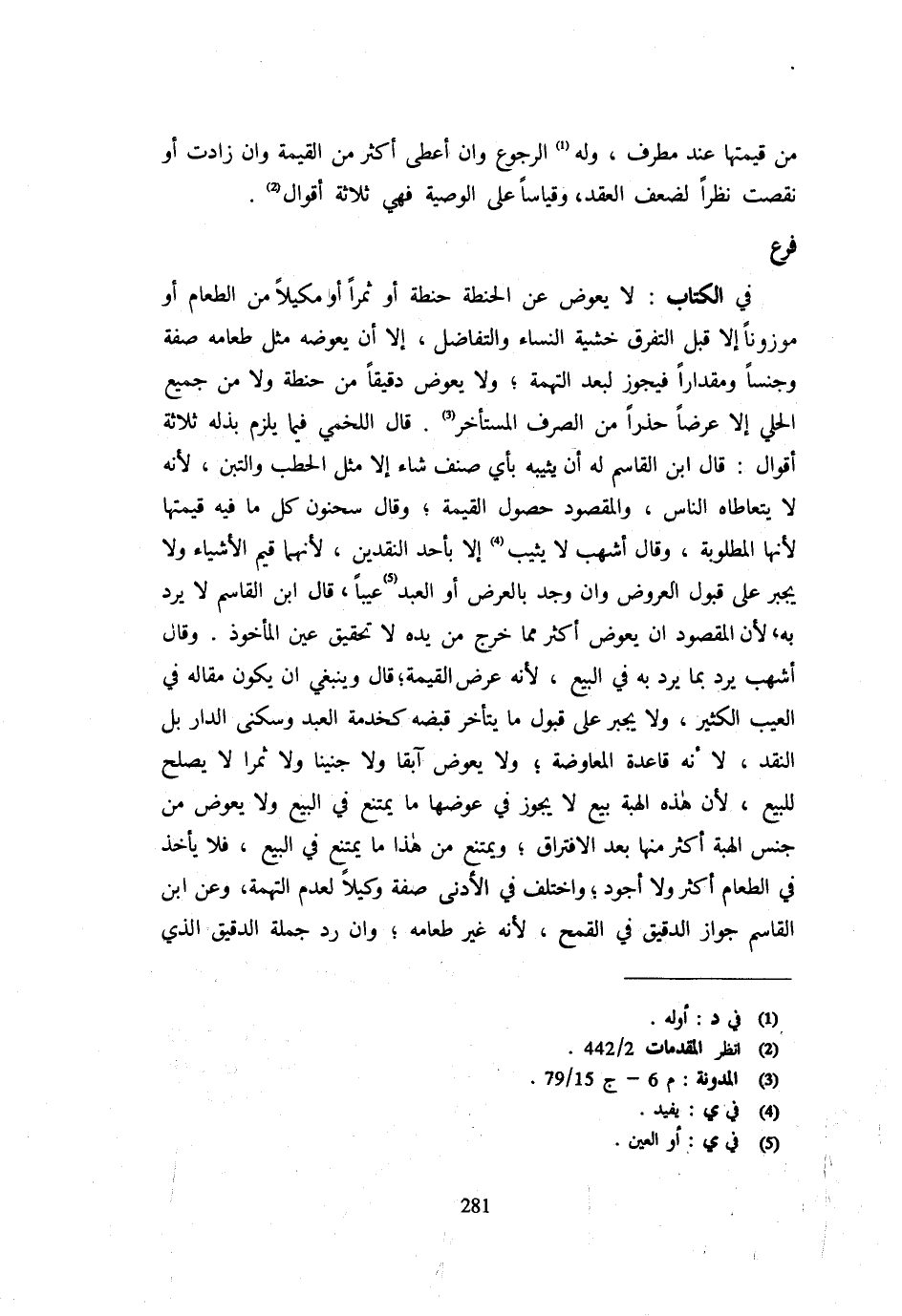 مِنْ قِيمَتِهَا عِنْدَ مُطَرِّفٍ وَلَهُ الرُّجُوعُ وَإِنْ أُعْطِيَ أَكْثَرَ مِنِ الْقِيمَةِ وَإِنْ زَادَتْ أَوْ نَقَصَتْ نَظَرًا لِضَعْفِ الْعَقْدِ وَقِيَاسًا عَلَى الْوَصِيَّةِ فَهِيَ ثَلَاثَةُ أَقْوَالٍ