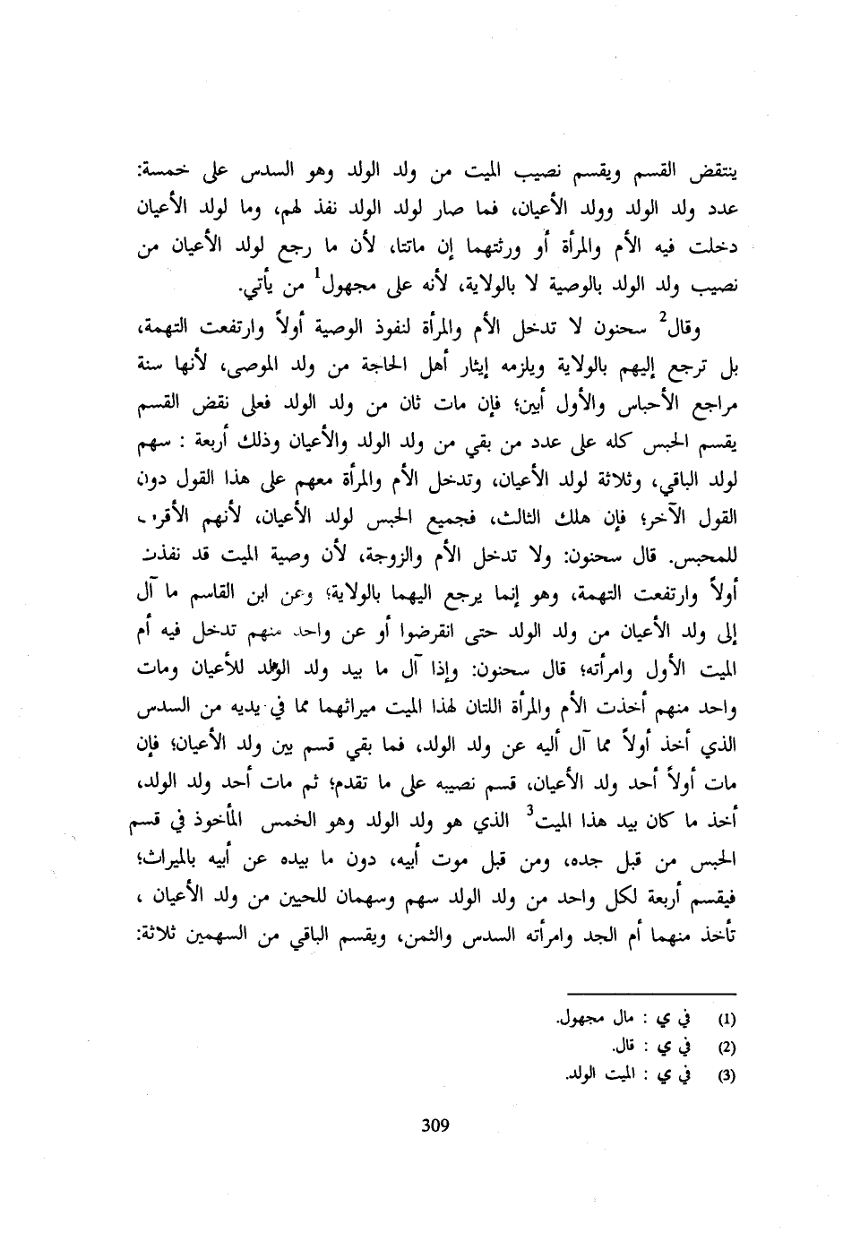يَنْتَقِضُ الْقَسْمُ وَيُقَسَّمُ نَصِيبُ الْمَيِّتِ مِنْ وَلَدِ الْوَلَدِ وَهُوَ السُّدُسُ عَلَى خَمْسَةٍ عَدَدِ وَلَدِ الْوَلَدِ وَوَلَدِ الْأَعْيَانِ فَمَا صَارَ لِوَلَدِ الْوَلَدِ نَفَذَ لَهُمْ وَمَا لِوَلَدِ الْأَعْيَانِ دَخَلَتْ فِيهِ الْأُمُّ وَالْمَرْأَةُ أَوْ وَرَثَتُهُمَا إِنْ مَاتَتَا لِأَنَّ مَا رَجَعَ لِوَلَدِ الْأَعْيَانِ مِنْ نَصِيبِ وَلَدِ الْوَلَدِ بِالْوَصِيَّةِ لَا بِالْوِلَايَةِ لِأَنَّهُ عَلَى مَجْهُولِ من يَأْتِي وَقَالَ سَحْنُونٌ لَا تَدْخُلُ الْأُمُّ وَالْمَرْأَةُ لِنُفُوذِ الْوَصِيَّةِ أَوَّلًا وَارْتَفَعَتِ التُّهْمَةُ بَلْ تَرْجِعُ إِلَيْهِمْ بِالْوِلَايَةِ وَيَلْزَمُهُ إِيثَارُ أَهْلِ الْحَاجَةِ مِنْ وَلَدِ الْمُوصِي لِأَنَّهَا سَنَةُ مَرَاجِعِ الْأَحْبَاسِ وَالْأَوَّلُ أَبْيَنُ فَإِنْ مَاتَ ثَانٍ مِنْ وَلَدِ الْوَلَدِ فَعَلَى نَقْضِ الْقَسْمِ يُقَسَّمُ الْحَبْسُ كُلُّهُ عَلَى عَدَدِ مَنْ بَقِيَ مِنْ وَلَدِ الْوَلَدِ وَالْأَعْيَانِ وَذَلِكَ أَرْبَعَةٌ سَهْمٌ لِوَلَدِ الْبَاقِي وَثَلَاثَةٌ لِوَلَدِ الْأَعْيَانِ وَتَدْخُلُ الْأُمُّ وَالْمَرْأَةُ مَعَهُمْ عَلَى هَذَا الْقَوْلِ دُونَ الْقَوْلِ الْآخَرِ فَإِنْ هَلَكَ الثَّالِثُ فَجَمِيعُ الْحَبْسِ لِوَلَدِ الْأَعْيَانِ لِأَنَّهُمُ الْأَقْرَبُ لِلْمُحْبِسِ قَالَ سَحْنُونٌ وَلَا تَدْخُلُ الْأُمُّ وَالزَّوْجَةُ لِأَنَّ وَصِيَّةَ الْمَيِّتِ قَدْ نَفَذَتْ أَوَّلًا وَارْتَفَعَتِ التُّهْمَةُ وَهُوَ إِنَّمَا يَرْجِعُ إِلَيْهِمَا بِالْوِلَايَةِ وَعَنِ ابْنِ الْقَاسِمِ مَا آلَ إِلَى وَلَدِ الْأَعْيَانِ مِنْ وَلَدِ الْوَلَدِ حَتَّى انْقَرَضُوا أَوْ عَنْ وَاحِدٍ مِنْهُمْ تَدْخُلُ فِيهِ أُمُّ الْمَيِّتِ الْأَوَّلِ وَامْرَأَتُهُ قَالَ سَحْنُونٌ وَإِذَا آلَ مَا بِيَدِ وَلَدِ الْوَلَدِ لِلْأَعْيَانِ وَمَاتَ وَاحِدٌ مِنْهُمْ أَخَذَتِ الْأُمُّ وَالْمَرْأَةُ اللَّتَانِ لِهَذَا الْمَيِّتِ مِيرَاثَهُمَا مِمَّا فِي يَدَيْهِ مِنَ السُّدُسِ الَّذِي أُخِذَ أَوَّلًا مِمَّا آلَ إِلَيْهِ عَنْ وَلَدِ الْوَلَدِ فَمَا بَقِيَ قُسِّمَ بَيْنَ وَلَدِ الْأَعْيَانِ فَإِنْ مَاتَ أَوَّلًا أَحَدُ وَلَدِ الْأَعْيَانِ قُسِّمَ نَصِيبُهُ عَلَى مَا تَقَدَّمَ ثمَّ مَاتَ أحد ولد الْوَلَد أَخذ مَا كَانَ بِيَدِ هَذَا الْمَيِّتِ الَّذِي هُوَ وَلَدُ الْوَلَدِ وَهُوَ الْخُمُسُ الْمَأْخُوذُ فِي قَسْمِ الْحَبْسِ مِنْ قِبَلِ جَدِّهِ وَمِنْ قِبَلِ مَوْتِ أَبِيهِ دُونَ مَا بِيَدِهِ عَنْ أَبِيهِ بِالْمِيرَاثِ فَيُقَسَّمُ أَرْبَعَةً لِكُلِّ وَاحِدٍ مِنْ وَلَدِ الْوَلَدِ سَهْمٌ وَسَهْمَانِ لِلْحَيَّيْنِ مِنْ وَلَدِ الْأَعْيَانِ تَأْخُذُ مِنْهُمَا أُمُّ الْجَدِّ وَامْرَأَتُهُ السُّدُسَ وَالثُّمُنَ وَيُقَسَّمُ الْبَاقِي مِنَ السَّهْمَيْنِ ثَلَاثَةً