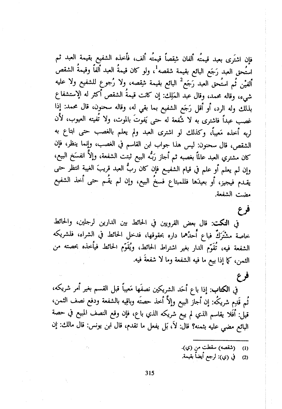 فِي النُّكَتِ قَالَ بَعْضُ الْقَرَوِيِّينَ فِي الْحَائِطِ بَيْنَ الدَّارَيْنِ لِرَجُلَيْنِ وَالْحَائِطُ خَاصَّةً مُشْتَرَكٌ فَبَاعَ أَحَدُهُمَا دَارَهُ بِحُقُوقِهَا فَدَخَلَ الْحَائِطُ فِي الشِّرَاءِ فَلِشَرِيكِهِ الشُّفْعَةُ فِيهِ تُقَوَّمُ الدَّارُ بِغَيْرِ اشْتِرَاطِ الْحَائِطِ وَيُقَوَّمُ الْحَائِطُ فَيَأْخُذُهُ بِحِصَّتِهِ مِنَ الثَّمَنِ كَمَا إِذَا بِيعَ مَا فِيهِ الشُّفْعَةُ وَمَا لَا شُفْعَةَ فِيهِ