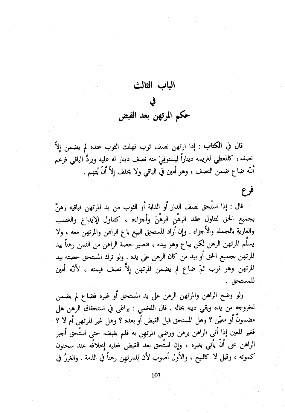 (الْبَابُ الثَّالِثُ فِي حُكْمِ الْمُرْتَهِنِ بَعْدَ الْقَبْضِ)