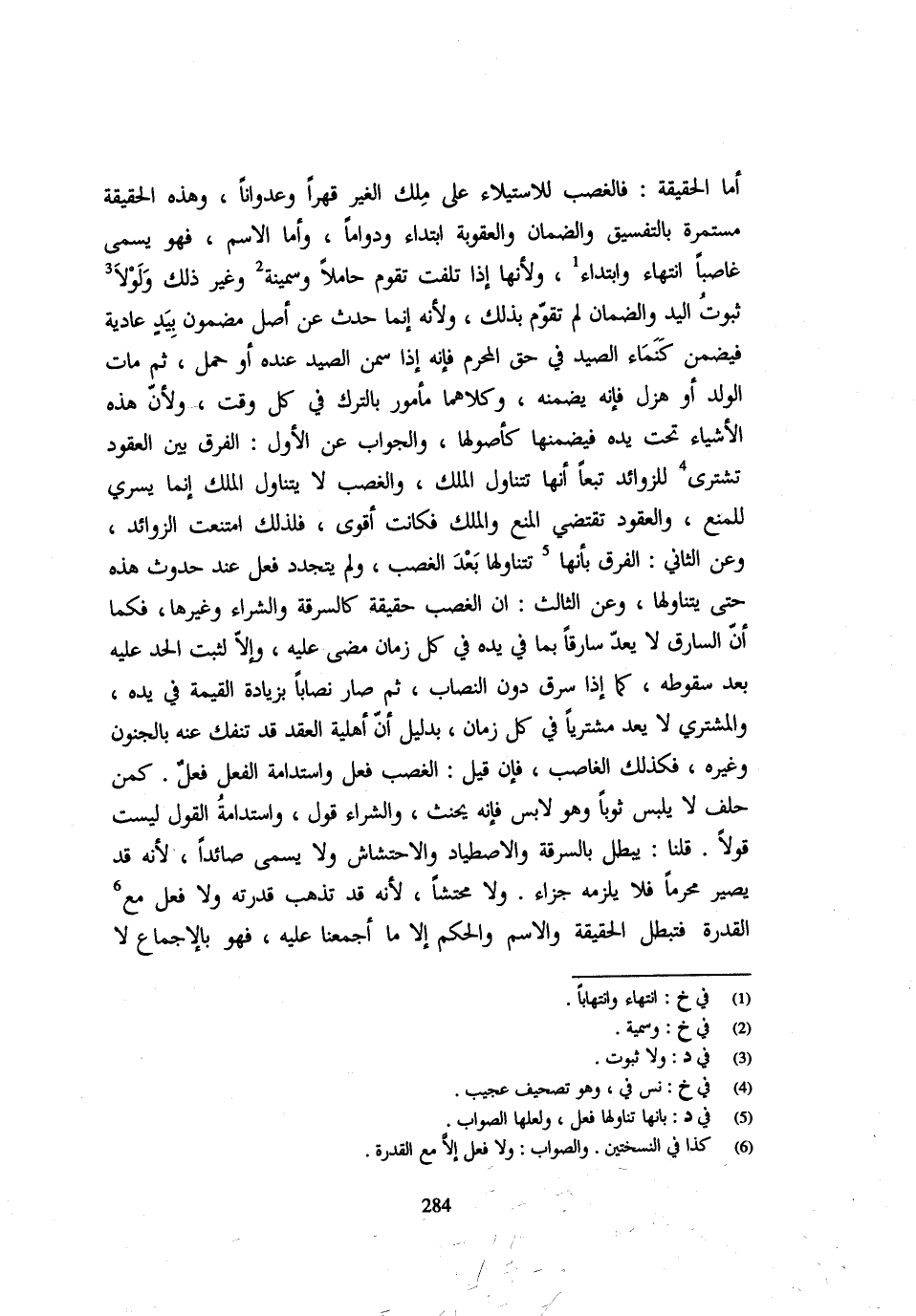أَمَّا الْحَقِيقَةُ: فَالْغَصْبُ لِلِاسْتِيلَاءِ عَلَى مِلْكِ الْغَيْرِ قهرا وعدواناً وَهَذِه الْحَقِيقَة مستمرة بالفسيق وَالضَّمَانِ وَالْعُقُوبَةِ ابْتِدَاءً وَدَوَامًا وَأَمَّا الِاسْمُ فَهُوَ يُسَمَّى غَاصِبًا انْتِهَاءً وَابْتِدَاءً وَلِأَنَّهَا إِذَا تَلِفَتْ تُقَوَّمُ حَامِلًا وَسَمِينَةً وَغَيْرَ ذَلِكَ وَلَوْلَا ثُبُوتُ الْيَدِ وَالضَّمَانِ لَمْ تُقَوَّمْ بِذَلِكَ وَلِأَنَّهُ إِنَّمَا حَدَثَ عَنْ أَصْلٍ مَضْمُونٍ بِيَدٍ عَادِيَّةٍ فَيُضْمَنُ كَنَمَاءِ الصَّيْدِ فِي حَقِّ الْمُحْرِمِ فَإِنَّهُ إِذَا سَمَّنَ الصَّيْدَ عِنْدَهُ أَوْ حَمَلَ ثُمَّ مَاتَ الْوَلَدُ أَوْ هَزَلَ فَإِنَّهُ يَضْمَنُهُ وَكِلَاهُمَا مَأْمُورٌ بِالتَّرْكِ فِي كُلِّ وَقْتٍ وَلِأَنَّ هَذِهِ الْأَشْيَاءَ تَحْتَ يَدِهِ فَيَضْمَنُهَا كَأُصُولِهَا وَالْجَوَابُ عَنِ الْأَوَّلِ: الْفَرْقُ بَيْنَ الْعُقُودِ تُشْتَرَى لِلزَّوَائِدِ تَبَعًا أَنَّهَا تَتَنَاوَلُ الْمِلْكَ وَالْغَصْبُ لَا يَتَنَاوَلُ الْمِلْكَ إِنَّمَا يَسْرِي لِلْمَنْعِ وَالْعُقُودُ تَقْتَضِي الْمَنْعَ وَالْمِلْكَ فَكَانَتْ أَقْوَى فَلِذَلِكَ امْتَنَعَتِ الزَّوَائِدُ وَعَنِ الثَّانِي: الْفَرْقُ بِأَنَّهَا تَتَنَاوَلُهَا بَعْدَ الْغَصْبِ وَلَمْ يَتَجَدَّدْ فِعْلٌ عِنْدَ حُدُوثِ هَذِهِ حَتَّى يَتَنَاوَلَهَا وَعَنِ الثَّالِثِ: أَنَّ الْغَصْبَ حَقِيقَةٌ كَالسَّرِقَةِ وَالشِّرَاءِ وَغَيْرِهَا فَكَمَا أَنَّ السَّارِقَ لَا يُعَدُّ سَارِقًا بِمَا فِي يَدِهِ فِي كُلِّ زَمَانٍ مَضَى عَلَيْهِ وَإِلَّا لَثَبَتَ الْحَدُّ عَلَيْهِ بَعْدَ سُقُوطِهِ كَمَا إِذَا سَرَقَ دُونَ النِّصَابِ ثُمَّ صَارَ نِصَابًا بِزِيَادَةِ الْقِيمَةِ فِي يَدِهِ وَالْمُشْتَرِي لَا يُعَدُّ مُشْتَرِيًا فِي كُلِّ زَمَانٍ بِدَلِيلِ أَنَّ أَهْلِيَّةَ الْعَقْدِ قَدْ تَنْفَكُّ عَنْهُ بِالْجُنُونِ وَغَيْرِهِ فَكَذَلِكَ الْغَاصِبُ فَإِنْ قِيلَ: الْغَصْبُ فِعْلٌ وَاسْتِدَامَةُ الْفِعْلِ فِعْلٌ كَمَنْ حَلَفَ لَا يَلْبَسُ ثَوْبًا وَهُوَ لَابِسٌ فَإِنَّهُ يَحْنَثُ وَالشِّرَاءُ قَوْلٌ وَاسْتِدَامَةُ الْقَوْلِ لَيْسَتْ قَوْلًا قُلْنَا: يَبْطُلُ بِالسَّرِقَةِ وَالِاصْطِيَادِ وَالِاحْتِشَاشِ وَلَا يُسَمَّى صَائِدًا لِأَنَّهُ قَدْ يَصِيرُ مُحَرَّمًا فَلَا يَلْزَمُهُ جَزَاءٌ وَلَا مُحْتَشًّا لِأَنَّهُ قَدْ تَذْهَبُ قدرته وَلَا فعل مَعَ الْقُدْرَة فَتبْطل الْحَقِيقَة وَالِاسْم وَالْحكم إِلَّا مَا أَجْمَعْنَا عَلَيْهِ فَهُوَ بِالْإِجْمَاعِ لَا