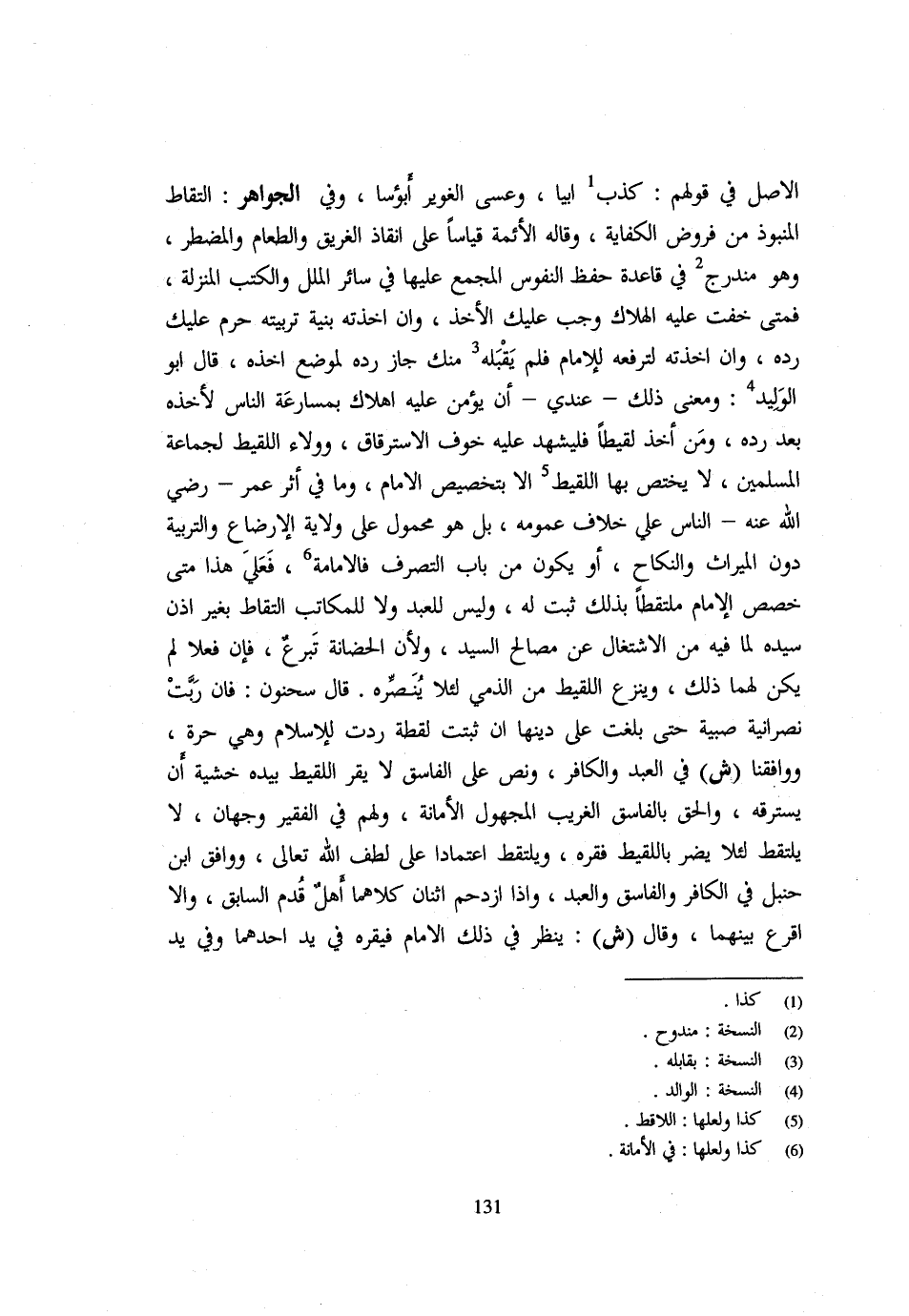 الْأَصْلَ فِي قَوْلِهِمْ كَذَبَ أُبَيًّا وَعَسَى الْغُوَيْرُ أَبْؤُسًا وَفِي الْجَوَاهِرِ الْتِقَاطُ الْمَنْبُوذِ مِنْ فُرُوضِ الْكِفَايَة وَقَالَ الْأَئِمَّةُ قِيَاسًا عَلَى إِنْقَاذِ الْغَرِيقِ وَالطَّعَامِ وَالْمُضْطَرِّ وَهُوَ مُنْدَرِجٌ فِي قَاعِدَةِ حِفْظِ النُّفُوسِ الْمُجْمَعِ عَلَيْهَا فِي سَائِرِ الْمِلَلِ وَالْكُتُبِ الْمُنَزَّلَةِ فَمَتَى خِفْتَ عَلَيْهِ الْهَلَاكَ وَجَبَ عَلَيْكَ الْأَخْذُ وَإِنْ أَخَذْتَهُ بِنِيَّةِ تَرْبِيَتِهِ حَرُمَ عَلَيْكَ رَدُّهُ وَإِنْ أَخَذْتَهُ لِتَرْفَعَهُ لِلْإِمَامِ فَلَمْ يَقْبَلْهُ مِنْكَ جَازَ رَدُّهُ لِمَوْضِعِ أَخْذِهِ قَالَ أَبُو الْوَلِيدِ وَمَعْنَى ذَلِك عِنْدِي أَن يُؤمن عَلَيْهِ اهلاك بِمُسَارَعَةِ النَّاسِ لِأَخْذِهِ بَعْدَ رَدِّهِ وَمَنْ أَخَذَ لَقِيطًا فَلْيُشْهِدْ عَلَيْهِ خَوْفَ الِاسْتِرْقَاقِ وَوَلَاءُ اللَّقِيطِ لجَماعَة الْمُسلمين لايختص بهَا اللَّقِيط إِلَّا بِتَخْصِيصِ الْإِمَامِ وَمَا فِي أَثَرِ عُمَرَ رَضِيَ اللَّهُ عَنْهُ النَّاسُ عَلَى خِلَافِ عُمُومِهِ بَلْ هُوَ مَحْمُولٌ عَلَى وِلَايَةِ الْإِرْضَاعِ وَالتَّرْبِيَةِ دُونَ الْمِيرَاثِ وَالنِّكَاحِ أَوْ يَكُونُ مِنْ بَابِ التَّصَرُّف فالإمامة فَعَلَى هَذَا مَتَى خَصَّصَ الْإِمَامُ مُلْتَقَطًا بِذَلِكَ ثَبَتَ لَهُ وَلَيْسَ لِلْعَبْدِ وَلَا لِلْمُكَاتَبِ الْتِقَاطٌ بِغَيْرِ إِذْنِ سَيِّدِهِ لِمَا فِيهِ مِنَ الِاشْتِغَالِ عَنْ مَصَالِحِ السَّيِّدِ وَلِأَنَّ الْحَضَانَةَ تَبَرُّعٌ فَإِنْ فَعَلَا لَمْ يَكُنْ لَهُمَا ذَلِكَ وَيُنْزَعُ اللَّقِيطُ مِنَ الذِّمِّيِّ لِئَلَّا يُنَصِّرَهُ قَالَ سَحْنُونٌ فَإِنْ رَبَّتْ نَصْرَانِيَّةٌ صَبِيَّةً حَتَّى بَلَغَتْ عَلَى دِينِهَا أَن ثبتَتْ لقطَة ردَّتْ على لِلْإِسْلَامِ وَهِيَ حُرَّةٌ وَوَافَقْنَا ش فِي الْعَبْدِ وَالْكَافِرِ وَنَصَّ عَلَى الْفَاسِقِ لَا يُقِرُّ اللَّقِيطُ بِيَدِهِ خَشْيَةَ أَنْ يَسْتَرِقَهُ وَأُلْحِقَ بِالْفَاسِقِ الْغَرِيبُ الْمَجْهُولُ الْأَمَانَةِ وَلَهُمْ فِي الْفَقِيرِ وَجْهَانِ لَا يلتقط لِئَلَّا يضر باللقيط فقره ويلتقط اعْتِمَاد عَلَى لُطْفِ اللَّهِ تَعَالَى وَوَافَقَ ابْنُ حَنْبَلٍ فِي الْكَافِرِ وَالْفَاسِقِ وَالْعَبْدِ وَإِذَا ازْدَحَمَ اثْنَانِ كِلَاهُمَا أَهْلٌ قُدِّمَ السَّابِقُ وَإِلَّا أُقْرِعَ بَيْنَهُمَا وَقَالَ ش يَنْظُرُ فِي ذَلِكَ الْإِمَامُ فَيُقِرُّهُ فِي يَد أَحدهمَا وَفِي يَد