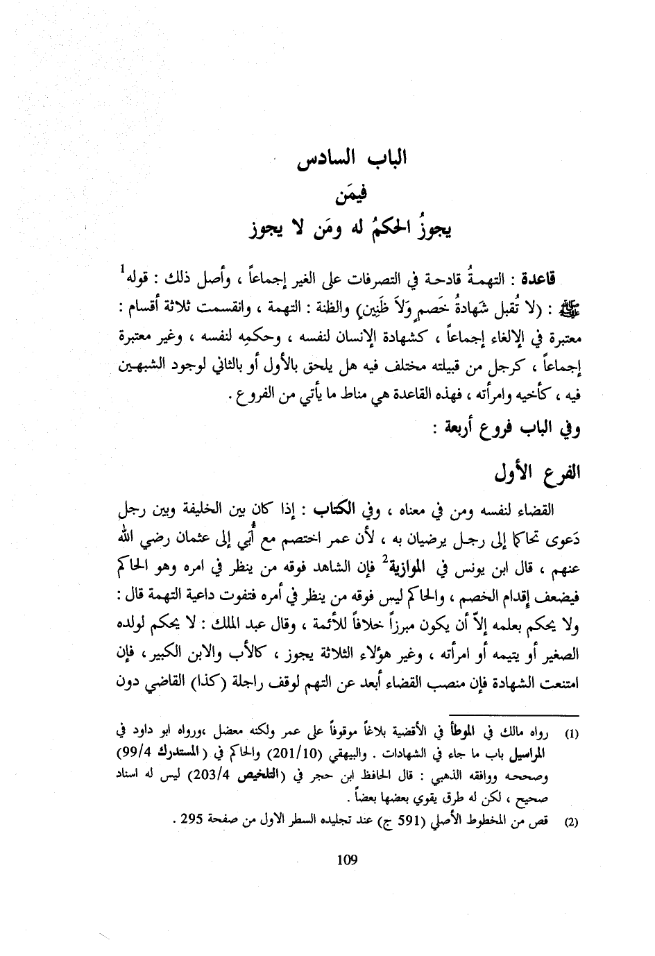 (الْبَابُ السَّادِسُ فِيمَنْ يَجُوزُ الْحُكْمُ لَهُ وَمَنْ لَا يَجُوزُ)