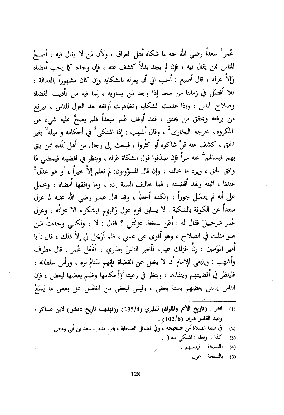 عُمَرُ سَعْدًا رَضِيَ اللَّهُ عَنْهُ لَمَّا شَكَاهُ أَهْلُ الْعِرَاقِ وَلِأَنَّ مَنْ لَا يُقَالُ فِيهِ أَصْلَحُ لِلنَّاسِ مِمَّنْ يُقَالُ فِيهِ فَإِنْ لَمْ يَجِدْ بَدَلًا كَشَفَ عَنْهُ فَإِنْ وَجَدَهُ كَمَا يَجِبُ أَمْضَاهُ وَإِلَّا عَزَلَهُ قَالَ أَصْبَغُ أَحَبُّ إِلَيَّ أَنْ يَعْزِلَهُ بِالشِّكَايَةِ وَإِنْ كَانَ مَشْهُورًا بِالْعَدَالَةِ فَلَا أَفْضَلَ فِي زَمَانِنَا مِنْ سَعْدٍ إِذَا وُجِدَ مَنْ يُسَاوِيهِ لِمَا فِيهِ مِنْ تاديب الْقُضَاة وَصَلَاح النَّاس واذا علمت الشِّكَايَةُ وَتَظَاهَرَتْ أَوْقَفَهُ بَعْدَ الْعَزْلِ لِلنَّاسِ فَيَرْفَعُ مَنْ يَرْفَعُهُ وَيُحَقِّقُ مَنْ يُحَقِّقُ فَقَدْ أَوْقَفَ عُمَرُ سَعْدًا فَلَمْ يَصِحَّ عَلَيْهِ شَيْءٌ مِنَ الْمَكْرُوهِ خَرَّجَهُ الْبُخَارِيُّ وَقَالَ أَشْهَبُ إِذَا اشْتُكِيَ فِي أَحْكَامِهِ وَمَيْلِهِ بِغَيْرِ الْحَقِّ كَشَفَ عَنْهُ قَلَّ شَاكُوهُ أَوْ كَثُرُوا فَيَبْعَثُ إِلَى رِجَالٍ مِنْ أَهْلِ بَلَدِهِ مِمَّنْ يَثِقُ بِهِمْ فَيَسْأَلُهُمْ عَنْهُ سِرًّا فَإِنْ صَدَّقُوا قَوْلَ الشُّكَاةِ عَزَلَهُ وَيَنْظُرُ فِي أَقْضِيَتِهِ فَيُمْضِي مَا وَافَقَ الْحَقَّ وَيرد مَا خَالفه وان قَالَ المسؤولون لَمْ نَعْلَمْ إِلَّا خَيْرًا أَوْ هُوَ عَدْلٌ عِنْدِنَا أَثْبَتَهُ وَنَفَّذَ أَقْضِيَتَهُ فَمَا خَالَفَ السُّنَّةَ رَدَّهُ وَمَا وَافَقَهَا أَمْضَاهُ وَيُحْمَلُ عَلَى أَنَّهُ لَمْ يَعْمَلْ جَوْرًا وَلَكِنَّهُ أَخْطَأَ وَقَدْ قَالَ عُمَرُ رَضِيَ اللَّهُ عَنْهُ لَمَّا عَزَلَ سَعْدًا عَنِ الْكُوفَةِ بِالشَّكِيَّةِ لَا يُسَابِقُ قَوْمٌ عَزْلَ وَالِيهِمْ فَيَشْكُونَهُ إِلَّا عَزَلْتُهُ وَعَزَلَ عُمَرُ شُرَحْبِيلَ فَقَالَ لَهُ أَعَنْ سَخْطٍ عَزَلْتَنِي فَقَالَ لَا وَلَكِنِّي وَجَدْتُ مَنْ هُوَ مِثْلُكَ فِي الصَّلَاحِ وَهُوَ اقوى على عَمَلي فَلم اريحل لِي إِلَّا ذَلِكَ قَالَ يَا أَمِيرَ الْمُؤْمِنِينَ إِنَّ عَزْلَكَ عَيْبٌ فَأَخْبِرِ النَّاسَ بِعُذْرِي فَفَعَلَ عمر قَالَ مطرف واشهب وَيَنْبَغِي للامام ان لَا يَغْفَلَ عَنِ الْقُضَاةِ فَإِنَّهُمْ سَنَامُ بِرِّهِ وَرَأْسُ سُلْطَانِهِ فَلْيَنْظُرْ فِي أَقَضِيَتِهِمْ وَيُنَفِّذْهَا وَيَنْظُرْ فِي رَعِيَّتِهِ وَأَحْكَامِهَا وَظُلْمِ بَعْضِهَا لِبَعْضٍ فَإِنَّ النَّاسَ يَسْتَنُّ بَعْضُهُمْ بِسُنَّةِ بَعْضٍ وَلَيْسَ لِبَعْضٍ مِنَ الْفَضْلِ عَلَى بَعْضٍ مَا يَسَعُ