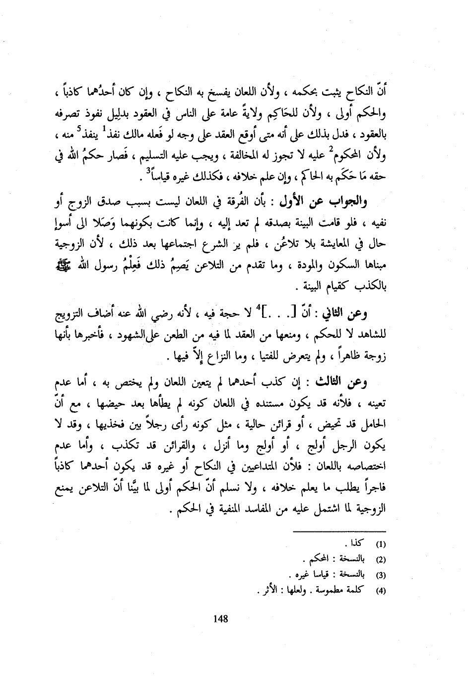 أَنَّ النِّكَاحَ يَثْبُتُ بِحُكْمِهِ وَلِأَنَّ اللِّعَانَ يُفْسَخُ بِهِ النِّكَاحُ وَإِنْ كَانَ أَحَدُهُمَا كَاذِبًا وَالْحُكْمُ أَوْلَى وَلِأَنَّ لِلْحَاكِمِ وِلَايَةً عَامَّةً عَلَى النَّاسِ فِي الْعُقُودِ بِدَلِيلِ نُفُوذِ تَصَرُّفِهِ بِالْعُقُودِ فَدَلَّ بذلك عَلَى أَنَّهُ مَتَى أُوقِعَ الْعَقْدُ عَلَى وَجْهٍ لَوْ فَعَلَهُ مَالِكٌ نَفَذَ يَنْفُذُ مِنْهُ وَلِأَنَّ الْمَحْكُومَ عَلَيْهِ لَا تَجُوزُ لَهُ الْمُخَالَفَةُ وَيَجِبُ عَلَيْهِ التَّسْلِيمُ فَصَارَ حُكْمُ اللَّهِ فِي حَقِّهِ مَا حَكَمَ بِهِ الْحَاكِمُ وَإِنْ عَلِمَ خِلَافَهُ فَكَذَلِكَ غَيْرُهُ قِيَاسًا وَالْجَوَابُ عَنِ الْأَوَّلِ بِأَنَّ الْفُرْقَةَ فِي اللِّعَانِ لَيْسَتْ بِسَبَبِ صِدْقِ الزَّوْجِ أَوْ نَفْيِهِ فَلَوْ قَامَتِ الْبَيِّنَةُ بِصِدْقِهِ لَمْ تَعُدْ إِلَيْهِ وَإِنَّمَا كَانَتْ بِكَوْنِهِمَا وَصَلَا إِلَى أَسْوَأِ حَالٍ فِي الْمُعَايَشَةِ بِلَا تَلَاعُنٍ فَلَمْ ير الشَّرْع اجتماعها بَعْدَ ذَلِكَ لِأَنَّ الزَّوْجِيَّةَ مَبْنَاهَا السُّكُونُ وَالْمَوَدَّةُ وَمَا تَقَدَّمَ مِنَ التَّلَاعُنِ يَصِمُ ذَلِكَ فَعَلِمَ رَسُول الله - صَلَّى اللَّهُ عَلَيْهِ وَسَلَّم َ - بِالْكَذِبِ كقيام الْبَيِّنَة وَعَن الثَّانِي ان لَا حُجَّةَ فِيهِ لِأَنَّهُ رَضِيَ اللَّهُ عَنْهُ اضاف التَّزْوِيج للشَّاهِد لَا لِلْحُكْمِ وَمَنَعَهَا مِنَ الْعَقْدِ لِمَا فِيهِ مِنَ الطَّعْنِ عَلَى الشُّهُودِ فَأَخْبَرَهَا بِأَنَّهَا زَوْجَةٌ ظَاهِرًا وَلَمْ يَتَعَرَّضْ لَلْفُتْيَا وَمَا النِّزَاعُ إِلَّا فِيهَا وَعَنِ الثَّالِثِ إِنْ كَذَبَ أَحَدُهُمَا لَمْ يتَعَيَّن اللّعان وَلَمْ يَخْتَصَّ بِهِ أَمَّا عَدَمُ تَعَيُّنِهِ فَلِأَنَّهُ قَدْ يَكُونُ مُسْتَنَدُهُ فِي اللِّعَانِ كَوْنَهُ لَمْ يَطَأْهَا بَعْدَ حَيْضِهَا مَعَ أَنَّ الْحَامِلَ قَدْ تَحِيضُ أَوْ قَرَائِنَ حَالِيَّةً مِثْلَ كَوْنِهِ رَأَى رجلا بَين فخديها وَقَدْ لَا يَكُونُ الرَّجُلُ أَوْلَجَ أَوْ أَوْلَجَ وَمَا أَنْزَلَ وَالْقَرَائِنُ قَدْ تُكَذِّبُ وَأَمَّا عَدَمُ اخْتِصَاصِهِ بِاللِّعَانِ فَلِأَنَّ الْمُتَدَاعِيَيْنِ فِي النِّكَاحِ أَوْ غَيْرِهِ قَدْ يَكُونُ أَحَدُهُمَا كَاذِبًا فَاجِرًا يَطْلُبُ مَا يُعْلَمُ خِلَافُهُ وَلَا نُسَلِّمُ أَنَّ الْحُكْمَ أَوْلَى لِمَا بَيَّنَّا أَنَّ التَّلَاعُنَ يَمْنَعُ الزَّوْجِيَّةَ لِمَا اشْتَمَلَ عَلَيْهِ مِنَ الْمَفَاسِدِ الْمَنْفِيَّةِ فِي الحكم