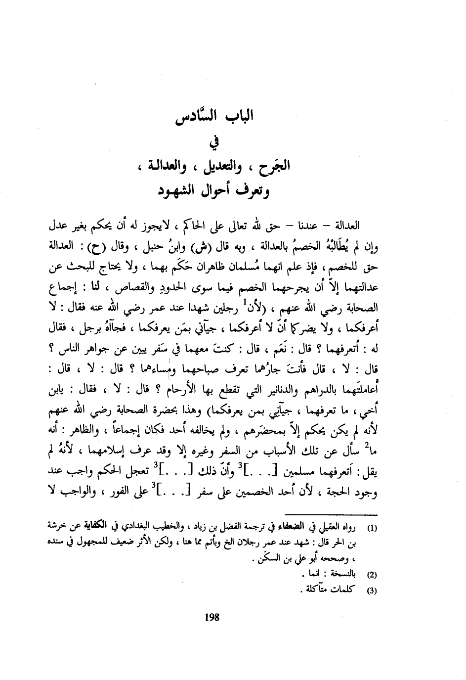 (الْبَابُ السَّادِسُ فِي الْجَرْحِ وَالتَّعْدِيلِ وَالْعَدَالَةِ وَتَعَرُّفِ أَحْوَالِ الشُّهُودِ)