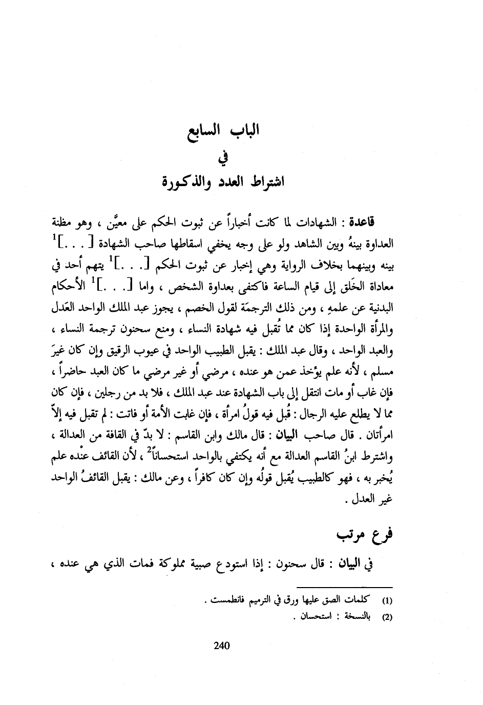 (الْبَابُ السَّابِعُ فِي اشْتِرَاطِ الْعَدَدِ وَالذُّكُورَةِ)