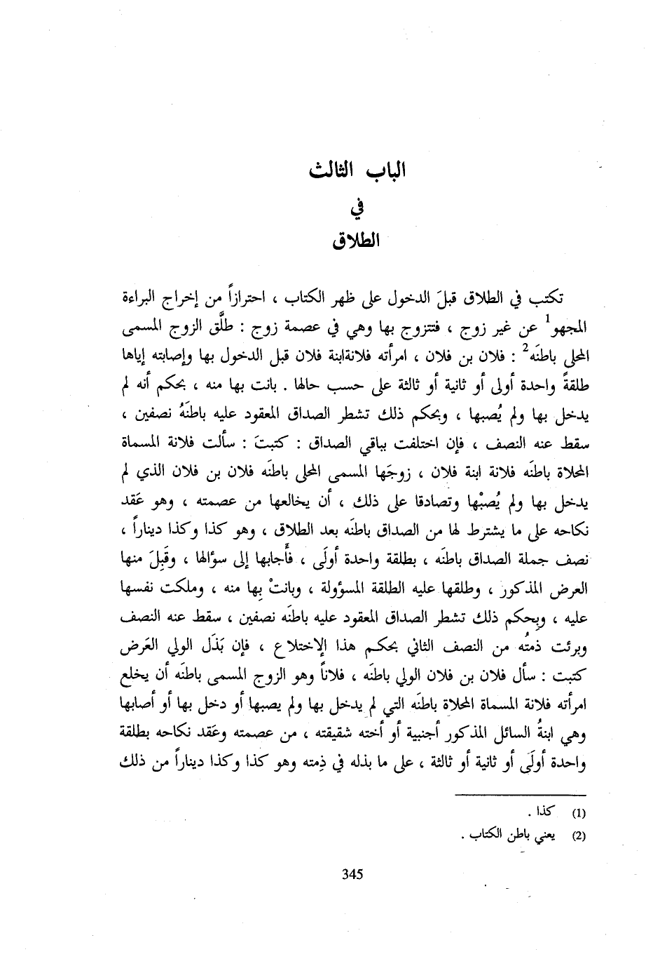 (الْبَابُ الثَّالِثُ فِي الطَّلَاقِ)