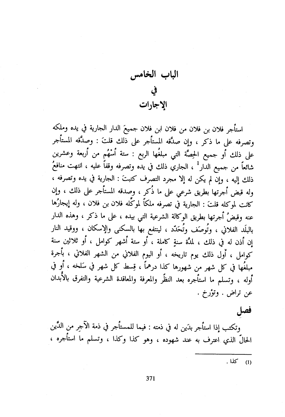 (الْبَابُ الْخَامِسُ فِي الْإِجَارَاتِ)