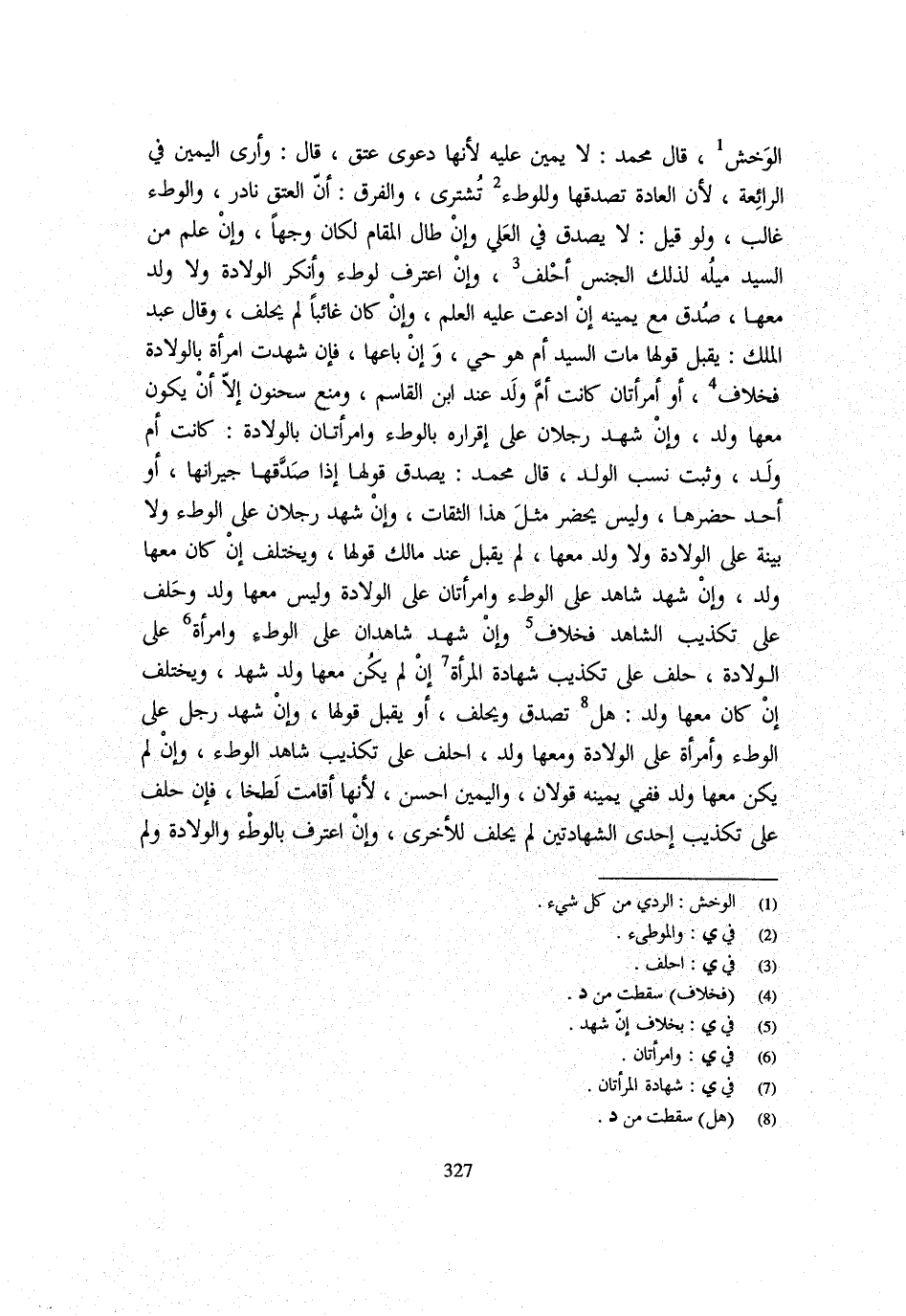 الْوَخْشِ قَالَ مُحَمَّدٌ لَا يَمِينَ عَلَيْهِ لِأَنَّهَا دَعْوَى عِتْقٍ قَالَ وَأَرَى الْيَمِينَ فِي الرَّائِعَةِ لِأَنَّ الْعَادَةَ تُصَدِّقُهَا وَلِلْوَطْءِ تُشْتَرَى وَالْفَرْقُ أَنَّ الْعِتْقَ نَادِرٌ وَالْوَطْءَ غَالِبٌ وَلَوْ قِيلَ لَا يُصَدَّقُ فِي الْعَلِيِّ وَإِنْ طَالَ الْمُقَامُ لَكَانَ وَجْهًا وَإِنْ عُلِمَ مِنَ السَّيِّدِ مَيْلُهُ لِذَلِكَ الْجِنْس احْلِف وَإِن اعْترف لوطء وَأَنْكَرَ الْوِلَادَةَ وَلَا وَلَدَ مَعَهَا صُدِّقَ مَعَ يَمِينِهِ إِنِ ادَّعَتْ عَلَيْهِ الْعِلْمَ وَإِنْ كَانَ غَائِبًا لَمْ يَحْلِفْ وَقَالَ عَبْدُ الْمَلِكِ يُقْبَلُ قَوْلُهَا مَاتَ السَّيِّدُ أَمْ هُوَ حَيٌّ وَإِنْ بَاعَهَا فَإِنْ شَهِدَتِ امْرَأَةٌ بِالْوِلَادَةِ فَخِلَافٌ أَوِ امْرَأَتَانِ كَانَتْ أُمَّ وَلَدٍ عِنْدَ ابْنِ الْقَاسِمِ وَمَنَعَ سَحْنُونٌ إِلَّا أَنْ يَكُونَ مَعَهَا وَلَدٌ وَإِنْ شَهِدَ رَجُلَانِ عَلَى إِقْرَارِهِ بِالْوَطْءِ وَامْرَأَتَانِ بِالْوِلَادَةِ كَانَتْ أُمَّ وَلَدٍ وَثَبَتَ نَسَبُ الْوَلَدِ قَالَ مُحَمَّدٌ يُصَدَّقُ قَوْلُهَا إِذَا صَدَّقَهَا جِيرَانُهَا أَوْ أَحَدٌ حَضَرِهَا وَلَيْسَ يَحْضُرُ مِثْلَ هَذَا الثِّقَاتُ وَإِنْ شَهِدَ رَجُلَانِ عَلَى الْوَطْءِ وَلَا بَيِّنَةَ عَلَى الْوِلَادَةِ وَلَا وَلَدَ مَعَهَا لَمْ يقبل عِنْد مَالك قَوْلهَا وَيخْتَلف إِنْ كَانَ مَعَهَا وَلَدٌ وَإِنْ شَهِدَ شَاهِدٌ عَلَى الْوَطْءِ وَامْرَأَتَانِ عَلَى الْوِلَادَةِ وَلَيْسَ مَعَهَا وَلَدٌ وَحَلَفَ عَلَى تَكْذِيبِ الشَّاهِدِ فَخِلَافٌ وَإِنْ شَهِدَ شَاهِدَانِ عَلَى الْوَطْءِ وَامْرَأَةٌ عَلَى الْوِلَادَةِ حَلَفَ عَلَى تَكْذِيبِ شَهَادَةِ الْمَرْأَةِ إِنْ لَمْ يكن مَعهَا ولد شهد وَيخْتَلف إِن كَانَ مَعهَا ولد هَل تصدق وَيَحْلِفُ أَوْ يُقْبَلُ قَوْلُهَا وَإِنْ شَهِدَ رَجُلٌ عَلَى الْوَطْءِ وَامْرَأَةٌ عَلَى الْوِلَادَةِ وَمَعَهَا وَلَدٌ احْلِف عَلَى تَكْذِيبِ شَاهِدِ الْوَطْءِ وَإِنْ لَمْ يَكُنْ مَعَهَا وَلَدٌ فَفِي يَمِينِهِ قَوْلَانِ وَالْيَمِينُ أَحْسَنُ لِأَنَّهَا اقامت لطخا فَإِنْ حَلَفَ عَلَى تَكْذِيبِ إِحْدَى الشَّهَادَتَيْنِ لَمْ يَحْلِفْ لِلْأُخْرَى وَإِنِ اعْتَرَفَ بِالْوَطْءِ وَالْوِلَادَةِ وَلَمْ