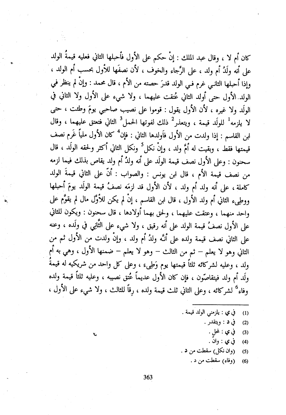 كَانَ أَمْ لَا وَقَالَ عَبْدُ الْمَلِكِ إِنْ حُكِمَ عَلَى الْأَوَّلِ فَأَحْبَلَهَا الثَّانِي فَعَلَيْهِ قِيمَةُ الْوَلَدِ عَلَى أَنَّهُ وَلَدُ أُمِّ وَلَدٍ عَلَى الرَّجَاء وَالْخَوْف لِأَنَّهُ نِصْفَهَا لِلْأَوَّلِ بِحَسْبَ أُمِّ الْوَلَدِ وَإِذَا أَحْبَلَهَا الثَّانِي غَرِمَ فِي الْوَلَدِ قَدْرَ حِصَّتِهِ مِنَ الْأُمِّ قَالَ مُحَمَّدٌ وَإِنْ لَمْ يَنْظُرْ فِي الْوَلَدِ الْأَوَّلِ حَتَّى أَوْلَدَ الثَّانِي عَتَقَتْ عَلَيْهِمَا وَلَا شَيْءَ عَلَى الْأَوَّلِ وَلَا الثَّانِي فِي الْوَلَدِ وَلَا غَيْرِهِ لِأَنَّ الْأَوَّلَ يَقُولُ قَوِّمُوا عَلَى نَصِيبِ صَاحِبِي يَوْمَ وَطِئْتَ حَتَّى لَا يَلْزَمَهُ لِلْوَلَدِ قِيمَةٌ وَيَتَعَذَّرُ ذَلِكَ لِفَوْتِهَا الْحَمْلَ الثَّانِي فَتُعْتَقُ عَلَيْهِمَا وَقَالَ ابْنُ الْقَاسِمِ إِذَا وَلَدَتْ مِنَ الْأَوَّلِ فَأَوْلَدَهَا الثَّانِي فَإِنْ كَانَ الْأَوَّلُ مَلِيًّا غَرِمَ نِصْفَ قِيمَتِهَا فَقَطْ وَبَقِيَتْ لَهُ أُمَّ وَلَدٍ وَإِنْ نَكَلَ وَنَكَلَ الثَّانِي أَكْثَرَ وَلَحِقَهُ الْوَلَدُ قَالَ سَحْنُونٌ وَعَلَى الْأَوَّلِ نِصْفُ قِيمَةِ الْوَلَدِ عَلَى أَنَّهُ وَلَدُ أُمِّ وَلَدٍ يُقَاصُّ بِذَلِكَ فِيمَا لَزِمَهُ مِنْ نِصْفِ قِيمَةِ الْأُمِّ قَالَ ابْنُ يُونُسَ وَالصَّوَابُ أَنَّ عَلَى الثَّانِي قِيمَةَ الْوَلَدِ كَامِلَةً عَلَى أَنَّهُ وَلَدُ أُمِّ وَلَدٍ لِأَنَّ الْأَوَّلَ قَدْ لَزِمَهُ نِصْفُ قِيمَةِ الْوَلَدِ يَوْمَ أَحْبَلَهَا وَوَطِئَ الثَّانِي أم ولد الأول قَالَ ابْن الْقَاسِم إِن لَمْ يَكُنْ لِلْأَوَّلِ مَالٌ لَمْ يُقَوَّمْ عَلَى وَاحِدٍ مِنْهُمَا وَعَتَقَتْ عَلَيْهِمَا وَلَحِقَ بِهِمَا أَوْلَادُهَا قَالَ سَحْنُونٌ وَيَكُونُ لِلثَّانِي عَلَى الْأَوَّلِ نِصْفُ قِيمَةِ وَلَدِهِ عَلَى أَنَّهُ وَلَدُ أُمِّ وَلَدٍ وَإِنْ وَلَدَتْ مِنَ الْأَوَّلِ ثُمَّ مِنَ الثَّانِي وَهُوَ لَا يَعْلَمُ ثُمَّ مِنَ الثَّالِثِ وَهُوَ لَا يَعْلَمُ ضَمِنَهَا الْأَوَّلُ وَهِيَ بِهِ أُمُّ وَلَدٍ وَعَلَيْهِ لِشُرَكَائِهِ ثُلُثَا قِيمَتِهَا يَوْمَ وَطِئَ وَعَلَى كُلِّ وَاحِدٍ مِنْ شَرِيكَيْهِ لَهُ قِيمَةُ وَلَدِ أُمِّ وَلَدٍ فَيَتَقَاصُّونَ فَإِنْ كَانَ الْأَوَّلُ عَدِيمًا عَتَقَ نَصِيبُهُ وَعَلَيْهِ ثُلُثَا قِيمَةِ وَلَدِهِ وَفَاءً لِشُرَكَائِهِ وَعَلَى الثَّانِي ثُلُثُ قِيمَةِ وَلَدِهِ رِقًّا لِلثَّالِثِ وَلَا شَيْءَ عَلَى الْأَوَّلِ