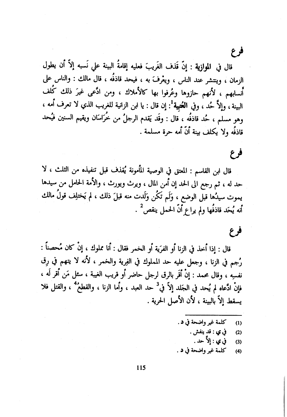فَرْعٌ قَالَ إِذَا أَخَذَ فِي الزِّنَا أَوِ الْفِرْيَةِ أَوِ الْخَمْرِ فَقَالَ أَنَا مَمْلُوكٌ إِنْ كَانَ مُحْصَنًا رُجِمَ فِي الزِّنَا وَجَعَلَ عَلَيْهِ حَدُّ الْمَمْلُوكِ فِي الْفِرْيَةِ وَالْخَمْرِ لِأَنَّهُ لَا يُتَّهَمُ فِي رِقِّ نَفْسِهِ وَقَالَ مُحَمَّدٌ إِنْ أَقَرَّ بِالرِّقِّ لِرَجُلٍ حَاضِرٍ أَوْ قَرِيبِ الْغَيْبَةِ سُئِلَ مَنْ أَقَرَّ لَهُ فَإِنِ ادَّعَاهُ لَمْ يُحَدَّ فِي الْجَلْدِ إِلَّا فِي حَدِّ الْعَبْدِ وَأَمَّا الزِّنَا وَالْقَطْعُ وَالْقَتْلُ فَلَا يَسْقُطُ إِلَّا بِالبَيِّنَةِ لِأَن الأَصْل الْحُرِّيَّة