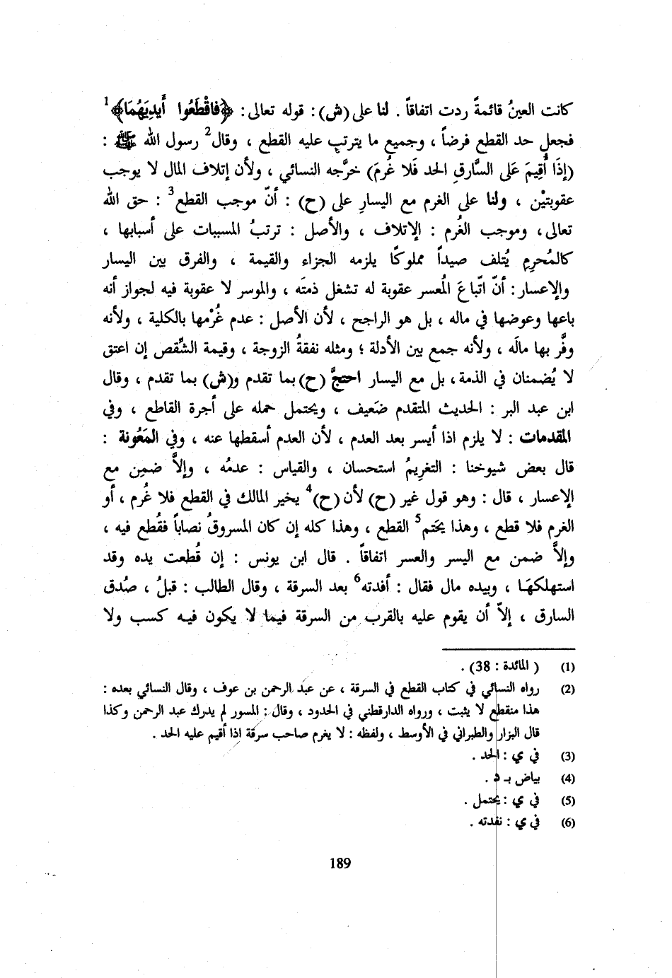 كَانَت الْعين قَائِمَة درت اتِّفَاقًا لَنَا عَلَى (ش) قَوْله تَعَالَى {فَاقْطَعُوا أَيْدِيهِمَا} فَجُعِلَ حَدُّ الْقَطْعِ فَرْضًا وَجَمِيعُ مَا يَتَرَتَّبُ عَلَيْهِ الْقَطْعُ وَقَالَ رَسُولُ اللَّهِ - صَلَّى اللَّهُ عَلَيْهِ وَسَلَّم َ - (إِذَا أُقِيمَ عَلَى السَّارِقِ الْحَدُّ فَلَا غُرْمَ) خَرَّجَهُ النَّسَائِيُّ وَلِأَنَّ إِتْلَافَ الْمَالِ لَا يُوجِبُ عُقُوبَتَيْنِ وَلَنَا عَلَى الْغُرْمِ مَعَ الْيَسَارِ عَلَى (ح) أَنَّ مُوجِبَ الْقَطْعِ حَقُّ اللَّهِ تَعَالَى وَمُوجِبَ الْغُرْمِ الْإِتْلَافُ وَالْأَصْلُ تُرَتُّبُ الْمُسَبِّبَاتِ عَلَى أَسْبَابِهَا كَالْمُحْرِمِ يُتْلِفُ صَيْدًا مَمْلُوكًا يَلْزَمُهُ الْجَزَاءُ وَالْقِيمَةُ وَالْفَرْقُ بَيْنَ الْيَسَارِ وَالْإِعْسَارِ أَنَّ اتِّبَاعَ الْمُعسر عبوبه لَهُ تَشْغَلُ ذِمَّتَهُ وَالْمُوسِرُ لَا عُقُوبَةَ فِيهِ لِجَوَازِ أَنَّهُ بَاعَهَا وَعَوَّضَهَا فِي مَالِهِ بَلْ هُوَ الرَّاجِحُ لِأَنَّ الْأَصْلَ عَدَمُ غُرْمِهَا بِالْكُلِّيَّةِ وَلِأَنَّهُ وَفَّرَ بِهَا مَالَهُ وَلِأَنَّهُ جَمَعَ بَيْنَ الْأَدِلَّة وَمثله نَفَقَة الزَّوْجَة وَقِيمَة الشّقص أُعْتِقَ لَا يُضْمَنَانِ فِي الذِّمَّةِ بَلْ مَعَ الْيَسَارِ احْتَجَّ (ح) بِمَا تَقَدَّمَ وَ (ش) بِمَا تَقَدَّمَ وَقَالَ ابْنُ عَبْدِ الْبَرِّ الْحَدِيثُ الْمُتَقَدِّمُ ضَعِيفٌ وَيُحْتَمَلُ حَمْلُهُ عَلَى أُجْرَةِ الْقَاطِعِ وَفِي الْمُقَدِّمَاتِ لَا يَلْزَمُ إِذَا أَيْسَرَ بَعْدَ الْعَدَم لِأَن الْعَدَم أسقطها عَنهُ وَفِي المعونة قَالَ بَعْضُ شُيُوخِنَا التَّغْرِيمُ اسْتِحْسَانٌ وَالْقِيَاسُ عَدَمُهُ وَإِلَّا ضَمِنَ مَعَ الْإِعْسَارِ قَالَ وَهُوَ قَوْلُ غَيْرِ (ح) لِأَنَّ (ح) يُخَيِّرُ الْمَالِكَ فِي الْقطع فَلَا عزّر أَوِ الْغُرْمِ فَلَا قَطْعَ وَهَذَا يُحَتِّمُ الْقَطْعَ وَهَذَا كُلُّهُ إِنْ كَانَ الْمَسْرُوقُ نِصَابًا فَقُطِعَ فِيهِ وَإِلَّا ضَمِنَ مَعَ الْيُسْرِ وَالْعُسْرِ اتِّفَاقًا قَالَ ابْنُ يُونُسَ إِنْ قُطِعَتْ يَدُهُ وَقَدِ اسْتَهْلَكَهَا وَبِيَدِهِ مَالٌ فَقَالَ أَفَدْتُهُ بَعْدَ السَّرِقَةِ وَقَالَ الطَّالِبُ قَبْلُ صُدِّقَ السَّارِقُ إِلَّا أَنْ يَقُومَ عَلَيْهِ بِالْقُرْبِ مِنَ السَّرِقَةِ فِيمَا لَا يَكُونُ فِيهِ كَسْبٌ وَلَا