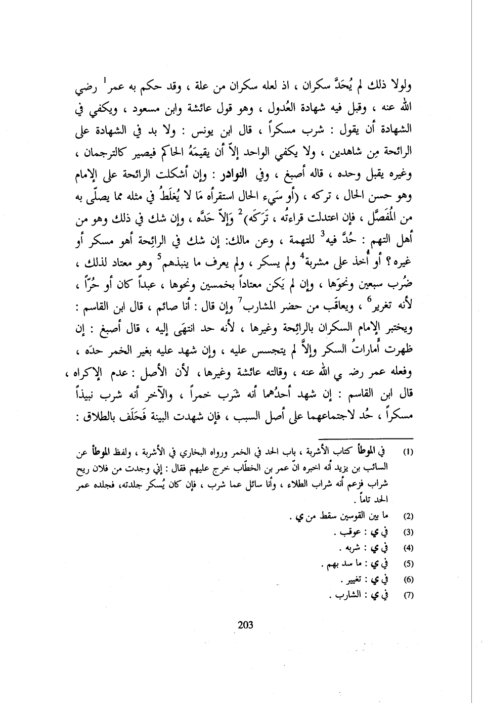 وَلَوْلَا ذَلِكَ لَمْ يُحَدَّ سَكْرَانُ إِذْ لَعَلَّهُ سَكْرَانُ مِنْ عِلَّةٍ وَقَدْ حَكَمَ بِهِ عُمَرُ رَضِيَ اللَّهُ عَنْهُ وَقَبِلَ فِيهِ شَهَادَةَ الْعُدُولِ وَهُوَ قَوْلُ عَائِشَةَ وَابْنِ مَسْعُودٍ وَيَكْفِي فِي الشَّهَادَةِ أَنْ يَقُولَ شَرِبَ مُسْكِرًا قَالَ ابْنُ يُونُسَ وَلَا بُدَّ فِي الشَّهَادَةِ عَلَى الرَّائِحَةِ مِنْ شَاهِدَيْنِ وَلَا يَكْفِي الْوَاحِدُ إِلَّا أَنْ يُقِيمَهُ الْحَاكِمُ فَيَصِيرُ كَالتُّرْجُمَانِ وَغَيْرُهُ يُقْبَلُ وَحْدَهُ قَالَهُ أَصْبَغُ وَفِي النَّوَادِرِ وَإِنْ أُشْكِلَتِ الرَّائِحَةُ عَلَى الْإِمَامِ وَهُوَ حَسَنُ الْحَالِ تَرَكَهُ (أَوْ سيء الْحَالِ اسْتَقْرَأَهُ مَا لَا يُغْلَطُ فِي مِثْلِهِ مِمَّا يُصَلَّى بِهِ مِنَ الْمُفَصَّلِ فَإِنِ اعْتَدَلَتْ قِرَاءَتُهُ تَرَكَهُ) وَإِلَّا حَدَّهُ وَإِنْ شَكَّ فِي ذَلِكَ وَهُوَ مِنْ أَهْلِ التُّهَمِ حُدَّ فِيهِ لِلتُّهْمَةِ وَعَنْ مَالِكٍ إِنْ شَكَّ فِي الرَّائِحَةِ أَهُوَ مُسْكِرٌ أَوْ غَيْرُهُ أَوْ أُخِذَ عَلَى مَشْرَبَةٍ وَلَمْ يَسْكَرْ وَلَمْ يَعْرِفْ مَا يَنْبِذُهُمْ وَهُوَ مُعْتَادٌ لِذَلِكَ ضُرِبَ سَبْعِينَ وَنَحْوَهَا وَإِنْ لَمْ يَكُنْ مُعْتَادًا بِخَمْسِينَ وَنَحْوِهَا عَبْدًا كَانَ أَوْ حُرًّا لِأَنَّهُ تَغْرِيرٌ وَيُعَاقَبُ مَنْ حَضَرَ المَشَارِبَ وَإِنْ قَالَ أَنَا صَائِمٌ قَالَ ابْنُ الْقَاسِمِ وَيَخْتَبِرُ الْإِمَامُ السَّكْرَانَ بِالرَّائِحَةِ وَغَيْرِهَا لِأَنَّهُ حَدٌّ انْتَهَى إِلَيْهِ قَالَ أَصْبَغُ إِنْ ظَهَرَتْ أَمَارَاتُ السُّكْرِ وَإِلَّا لَمْ يَتَجَسَّسْ عَلَيْهِ وَإِنْ شَهِدَ عَلَيْهِ بِغَيْرِ الْخَمْرِ حَدَّهُ وَفَعَلَهُ عُمَرُ رَضِيَ اللَّهُ عَنْهُ وَقَالَتْهُ عَائِشَةُ وَغَيْرُهَا لِأَنَّ الْأَصْلَ عَدَمُ الْإِكْرَاهِ قَالَ ابْنُ الْقَاسِمِ إِنْ شَهِدَ أَحَدُهُمَا أَنَّهُ شَرِبَ خَمْرًا وَالْآخَرُ أَنَّهُ شَرِبَ نَبِيذًا مُسْكِرًا حُدَّ لِاجْتِمَاعِهِمَا عَلَى أَصْلِ السَّبَبِ فَإِنْ شَهِدَتِ الْبَيِّنَةُ فَحَلَفَ بِالطَّلَاقِ