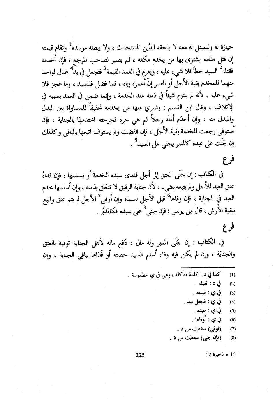 فَرْعٌ فِي الْكِتَابِ إِنْ جَنَى الْمُعْتق إِلَى أجل ففدى سَيّده الْخدمَة أويسلمها فَإِنْ فَدَاهُ عُتِقَ الْعَبْدُ لِلْأَجَلِ وَلَمْ يُتْبِعْهُ بِشَيْءٍ لِأَنَّ جِنَايَةَ الرَّقِيقِ لَا تَتَعَلَّقُ بِذِمَّتِهِ وَإِنْ أَسْلَمَهَا خَدَمَ الْعَبْدُ فِي الْجِنَايَةِ فَإِنْ وفاها قبل الْأَجَل لسَيِّده وَإِن أوفى الْأَجَل لم يَتِمَّ عِتْقٌ وَاتُّبِعَ بِبَقِيَّةِ الْأَرْشِ قَالَ ابْنُ يُونُسَ فَإِنْ جَنَى عَلَى سَيِّدِهِ فَكَالْمُدَبَّرِ