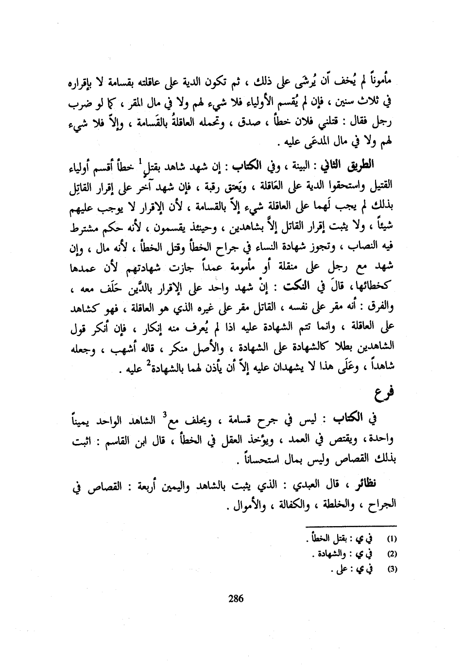 مَأْمُونًا لَمْ يُخَفْ أَنْ يُرْشَى عَلَى ذَلِكَ ثُمَّ تَكُونُ الدِّيَةُ عَلَى عَاقِلَتِهِ بِقَسَامَةٍ لَا بِإِقْرَارِهِ فِي ثَلَاثِ سِنِينَ فَإِنْ لَمْ يُقْسِمِ الْأَوْلِيَاء فَلَا شَيْء لَهُم فِي مَالِ الْمُقِرِّ كَمَا لَوْ ضَرَبَ رَجُلٌ فَقَالَ قَتَلَنِي فُلَانٌ خَطَأً صُدِّقَ وَتَحْمِلُهُ الْعَاقِلَةُ بِالْقَسَامَةِ وَإِلَّا فَلَا شَيْءَ لَهُمْ وَلَا فِي مَال الْمُدَّعِي عَلَيْهِ الطَّرِيق الثَّانِي الْبَيِّنَة وَفِي الْكِتَابِ إِنْ شَهِدَ شَاهِدٌ بِقَتْلٍ خَطَأٍ أَقْسَمَ أَوْلِيَاءُ الْقَتِيلِ وَاسْتَحَقُّوا الدِّيَةَ عَلَى الْعَاقِلَةِ وَيُعْتِقُ رَقَبَةً فَإِنْ شَهِدَ آخَرُ عَلَى إِقْرَارِ الْقَاتِلِ بِذَلِكَ لَمْ يَجِبْ لَهُمَا عَلَى الْعَاقِلَةِ وَيُعْتِقُ رَقَبَةً فَإِنْ شَهِدَ آخَرُ عَلَى إِقْرَارِ الْقَاتِلِ بِذَلِكَ لَمْ يَجِبْ لَهُمَا عَلَى الْعَاقِلَةِ شَيْءٌ إِلَّا بِالْقَسَامَةِ لِأَنَّ الْإِقْرَارَ لَا يُوجِبُ عَلَيْهِمْ شَيْئًا وَلَا يَثْبُتُ إِقْرَارُ الْقَاتِلِ إِلَّا بِشَاهِدين وَحِينَئِذٍ يقسمون لِأَنَّهُ حكم مشترط فِيهِ النِّصَابُ وَتَجُوزُ شَهَادَةُ النِّسَاءِ فِي جِرَاحِ الْخَطَأِ وَقَتْلِ الْخَطَأِ لِأَنَّهُ مَالٌ وَإِنْ شَهِدَ مَعَ رَجُلٍ عَلَى مُنَقِّلَةٍ أَوْ مَأْمُومَةٍ عَمْدًا جَازَت شَهَادَتهم لِأَن عمدها كخطائها قَالَ فِي النُّكَتِ إِنْ شَهِدَ وَاحِدٌ عَلَى الْإِقْرَارِ بِالدَّيْنِ حَلَفَ مَعَهُ وَالْفَرْقُ أَنَّهُ مُقِرٌّ على نَفسه الْقَاتِل مُقِرٌّ عَلَى غَيْرِهِ الَّذِي هُوَ الْعَاقِلَةُ فَهُوَ كَشَاهِدٍ عَلَى الْعَاقِلَةِ وَإِنَّمَا تَتِمُّ الشَّهَادَةُ عَلَيْهِ إِذَا لَمْ يُعْرَفْ مِنْهُ إِنْكَارٌ فَإِنْ أَنْكَرَ قَوْلَ الشَّاهِدَيْنِ بَطَلَا كَالشَّهَادَةِ عَلَى الشَّهَادَةِ وَالْأَصْلُ مُنْكَرٌ قَالَهُ أَشْهَبُ وَجَعَلَهُ شَاهِدًا وَعَلَى هَذَا لَا يَشْهَدَانِ عَلَيْهِ إِلَّا أَنْ يَأْذَنَ لَهُمَا بِالشَّهَادَةِ عَلَيْهِ