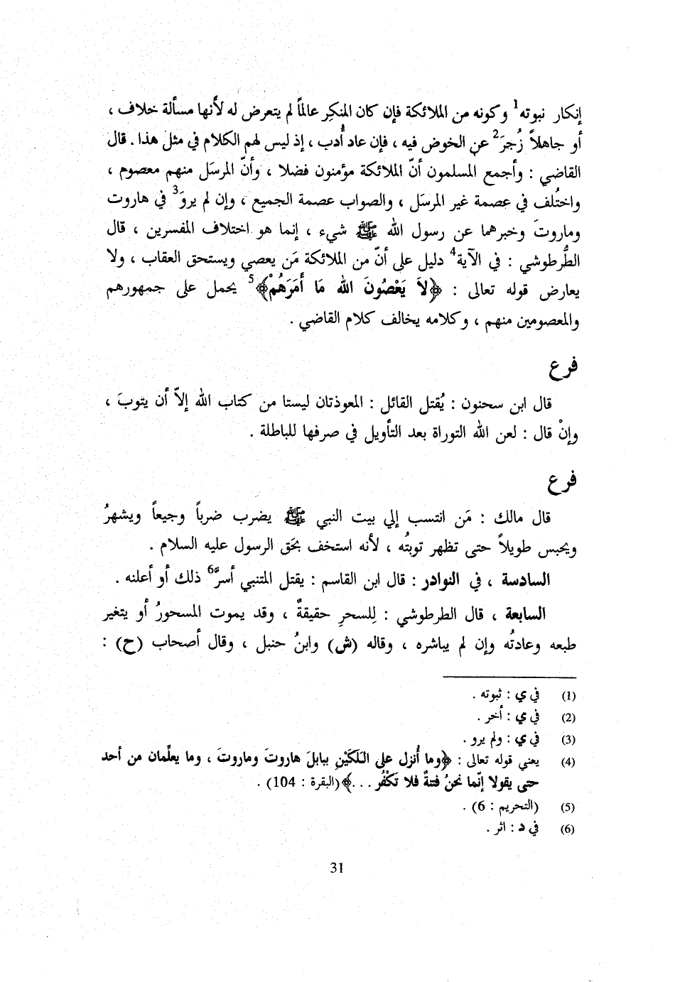 فَرْعٌ قَالَ ابْنُ سَحْنُونٍ يُقْتَلُ الْقَائِلُ الْمُعَوِّذَتَانِ لَيْسَتَا مِنْ كِتَابِ اللَّهِ إِلَّا أَنْ يَتُوبَ وَإِنْ قَالَ لَعَنَ اللَّهُ التَّوْرَاةَ بَعْدَ التَّأْوِيلِ فِي صَرْفِهَا لِلْبَاطِلَةِ