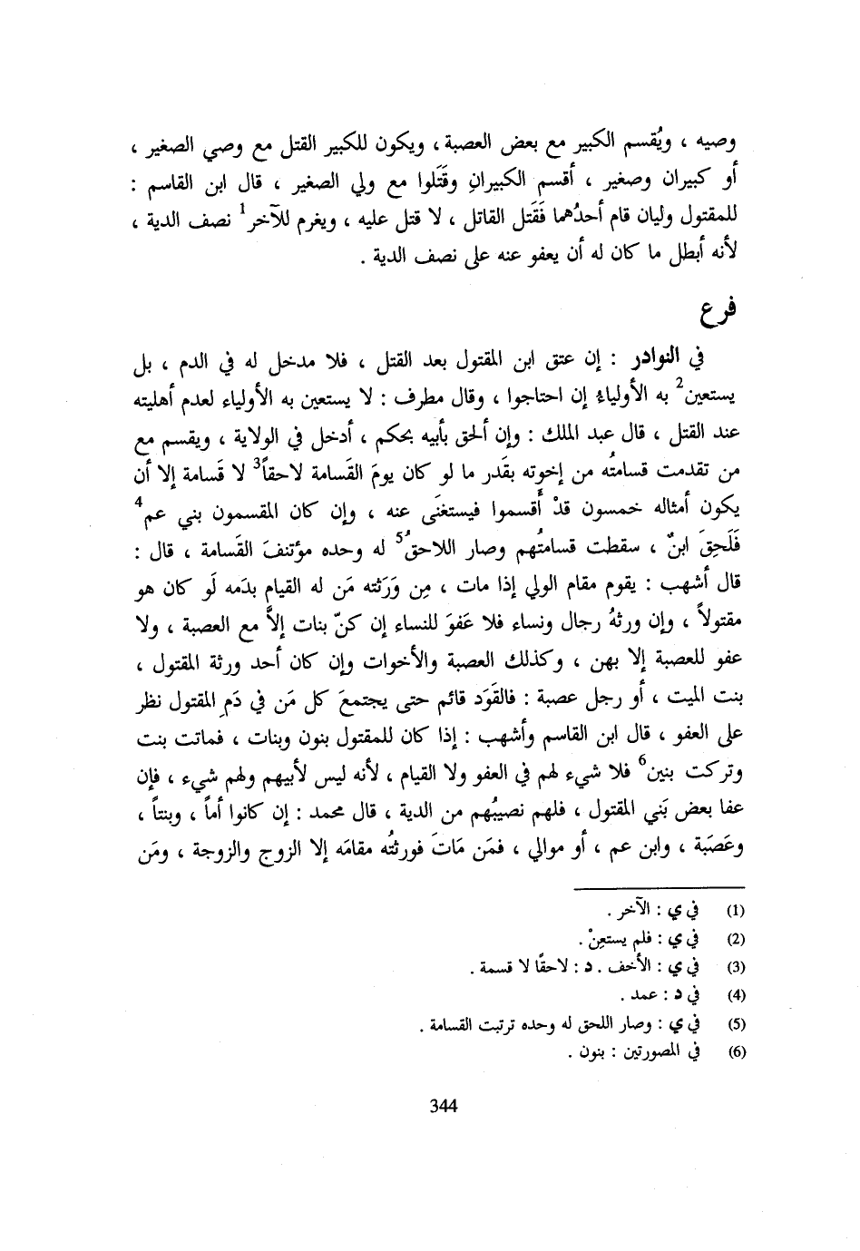 فَرْعٌ فِي النَّوَادِرِ إِنْ عُتِقَ ابْنُ الْمَقْتُولِ بَعْدَ الْقَتْلِ فَلَا مَدْخَلَ لَهُ فِي الدَّمِ بَلْ يَسْتَعِينُ بِهِ الْأَوْلِيَاءُ إِنِ احْتَاجُوا وَقَالَ مُطَرِّفٌ لَا يَسْتَعِينُ بِهِ الْأَوْلِيَاءُ لِعَدَمِ أَهْلِيَّتِهِ عِنْدَ الْقَتْلِ قَالَ عَبْدُ الْمَلِكِ وَإِنْ أُلْحِقَ بِأَبِيهِ بِحُكْمٍ أُدْخِلَ فِي الْوِلَايَةِ وَيُقْسِمُ مَعَ مَنْ تَقَدَّمَتْ قَسَامَتُهُ مِنْ إِخْوَتِهِ بِقَدْرِ مَا لَوْ كَانَ يَوْم الْقسَامَة لاحقا لَا قسَامَة إِلَّا أَنْ يَكُونَ أَمْثَالُهُ خَمْسُونَ قَدْ أَقْسَمُوا فَيُسْتَغْنَى عَنْهُ وَإِنْ كَانَ الْمُقْسِمُونَ بَنِي عَمٍّ فلحق ابْن سَقَطت قسامتهم وَصَارَ اللَّاحِق لَهُ وَحده مؤتنف القاسمة قَالَ قَالَ أَشْهَبُ يَقُومُ مَقَامَ الْوَلِيِّ إِذَا مَاتَ مِنْ وَرَثَتِهِ مَنْ لَهُ الْقِيَامُ بِدَمِهِ لَوْ كَانَ هُوَ مَقْتُولًا وَإِنْ وَرِثَهُ رِجَالٌ وَنِسَاءٌ فَلَا عَفْوَ لِلنِّسَاءِ إِنْ كُنَّ بَنَاتٍ إِلَّا مَعَ الْعَصَبَةِ وَلَا عَفْوَ لِلْعَصَبَةِ إِلَّا بِهِنَّ وَكَذَلِكَ الْعَصَبَةُ وَالْأَخَوَاتُ وَإِنْ كَانَ أَحَدُ وَرَثَةِ الْمَقْتُولِ بِنْتُ الْمَيِّتِ أَوْ رَجُلٌ عَصَبَةً فَالْقَوَدُ قَائِمٌ حَتَّى يَجْتَمِعَ كُلُّ مَنْ فِي دَمِ الْمَقْتُولِ نَظَرٌ عَلَى الْعَفْوِ قَالَ ابْنُ الْقَاسِم وَأَشْهَب إِذا كَانَ لِلْمَقْتُولِ بَنُونَ وَبَنَاتٌ فَمَاتَتْ بِنْتٌ وَتَرَكَتْ بَنِينَ فَلَا شَيْءَ لَهُمْ فِي الْعَفْوِ وَلَا الْقيام لِأَنَّهُ لَيْسَ لأبيهم وَلَهُم شَيْء فَإِن عَفَا بَعْضُ بَنِي الْمَقْتُولِ فَلَهُمْ نَصِيبُهُمْ مِنَ الدِّيَةِ قَالَ مُحَمَّدٌ إِنْ كَانُوا أُمًّا وَبِنْتًا وَعَصَبَةً وَابْنَ عَمِّ أَوْ مَوَالِيَ فَمَنْ مَاتَ فَوَرَثَتُهُ مَقَامَهُ إِلَّا الزَّوْجُ وَالزَّوْجَةُ وَمَنْ