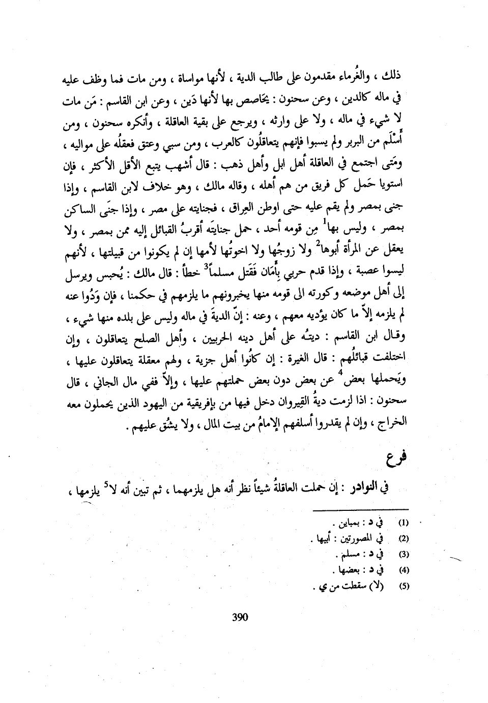 ذَلِكَ وَالْغُرَمَاءُ مُقْدِمُونَ عَلَى طَالِبِ الدِّيَةِ لِأَنَّهَا مُوَاسَاةٌ وَمَنْ مَاتَ فَمَا وُظِّفَ عَلَيْهِ فِي مَالِهِ كَالدَّيْنِ وَعَنْ سَحْنُونٍ يُحَاصِصْ بِهَا لِأَنَّهَا دَيْنٌ وَعَنِ ابْنِ الْقَاسِمِ مَنْ مَاتَ لَا شَيْءَ فِي مَالِهِ وَلَا عَلَى وَارِثِهِ وَيَرْجِعُ عَلَى بَقِيَّةِ الْعَاقِلَةِ وَأَنْكَرَهُ سَحْنُونٌ وَمَنْ أَسْلَمَ مِنَ الْبَرْبَرِ وَلَمْ يُسْبَوْا فَإِنَّهُمْ يَتَعَاقَلُونَ كَالْعَرَبِ وَمَنْ سُبِيَ وَعُتِقَ فَعَقْلُهُ عَلَى مَوَالِيهِ وَمَتَى اجْتَمَعَ فِي الْعَاقِلَةِ أَهْلُ إِبِلٍ وَأَهْلُ ذَهَبٍ قَالَ أَشْهَبُ يَتْبَعُ الْأَقَلُّ الْأَكْثَرَ فَإِنِ اسْتَوَيَا حمل كل فريق من هم أَهله وَقَالَ مَالِكٌ وَهُوَ خِلَافٌ لِابْنِ الْقَاسِمِ وَإِذَا جَنَى بِمِصْرَ وَلَمْ يَقُمْ عَلَيْهِ حَتَّى أُوْطِنَ الْعِرَاقَ فَجِنَايَتُهُ عَلَى مِصْرَ وَإِذَا جَنَى السَّاكِنُ بِمِصْرَ وَلَيْسَ بِهَا مِنْ قَوْمِهِ أَحَدٌ حَمَلَ جِنَايَتَهُ أَقْرَبُ الْقَبَائِلِ إِلَيْهِ مِمَّنْ بِمِصْرَ وَلَا يَعْقِلُ عَنِ الْمَرْأَةِ أَبُوهَا وَلَا زَوْجُهَا وَلَا إِخْوَتُهَا لِأُمِّهَا إِنْ لَمْ يَكُونُوا مِنْ قَبِيلَتِهَا لِأَنَّهُمْ لَيْسُوا عَصَبَةً وَإِذَا قَدِمَ حَرْبِيٌّ بِأَمَانٍ فَقَتَلَ مُسْلِمًا خَطَأً قَالَ مَالِكٌ يُحْبَسُ وَيُرْسَلُ إِلَى أَهْلِ مَوْضِعِهِ وَكُورَتِهِ إِلَى قَوْمِهِ مِنْهَا يُخْبِرُونَهُمْ مَا يَلْزَمُهُمْ فِي حُكْمِنَا فَإِنْ وَدَوْا عَنْهُ لم يلْزمه إِلَّا مَا كَانَ يُؤَدِّيه مَعَهُمْ وَعَنْهُ إِنَّ الدِّيَةَ فِي مَالِهِ وَلَيْسَ عَلَى بَلَدِهِ مِنْهَا شَيْءٌ وَقَالَ ابْنُ الْقَاسِمِ دِيَتُهُ عَلَى أَهْلِ دِينِهِ الْحَرْبِيِّينَ وَأَهْلُ الصُّلْحِ يتعاقلون وَإِن اخْتلفت قبائلهم قَالَ الْغيرَة إِنْ كَانُوا أَهْلَ جِزْيَةٍ وَلَهُمْ مَعْقَلَةٌ يَتَعَاقَلُونَ عَلَيْهَا وَيَحْمِلُهَا بَعْضٌ عَنْ بَعْضٍ دُونَ بَعْضٍ حَمْلَتُهُمْ عَلَيْهَا وَإِلَّا فَفِي مَالِ الْجَانِي قَالَ سَحْنُونٌ إِذَا لَزِمَتْ دِيَةُ الْقَيْرَوَانَ دَخَلَ فِيهَا مَنْ بِإِفْرِيقِيَّةَ مِنَ الْيَهُودِ الَّذِينَ يَحْمِلُونَ مَعَهُ الْخَرَاجَ وَإِنْ لَمْ يَقْدِرُوا أَسْلَفَهُمُ الْإِمَامُ مِنْ بَيْتِ الْمَالِ وَلَا يَشُقُّ عَلَيْهِمْ