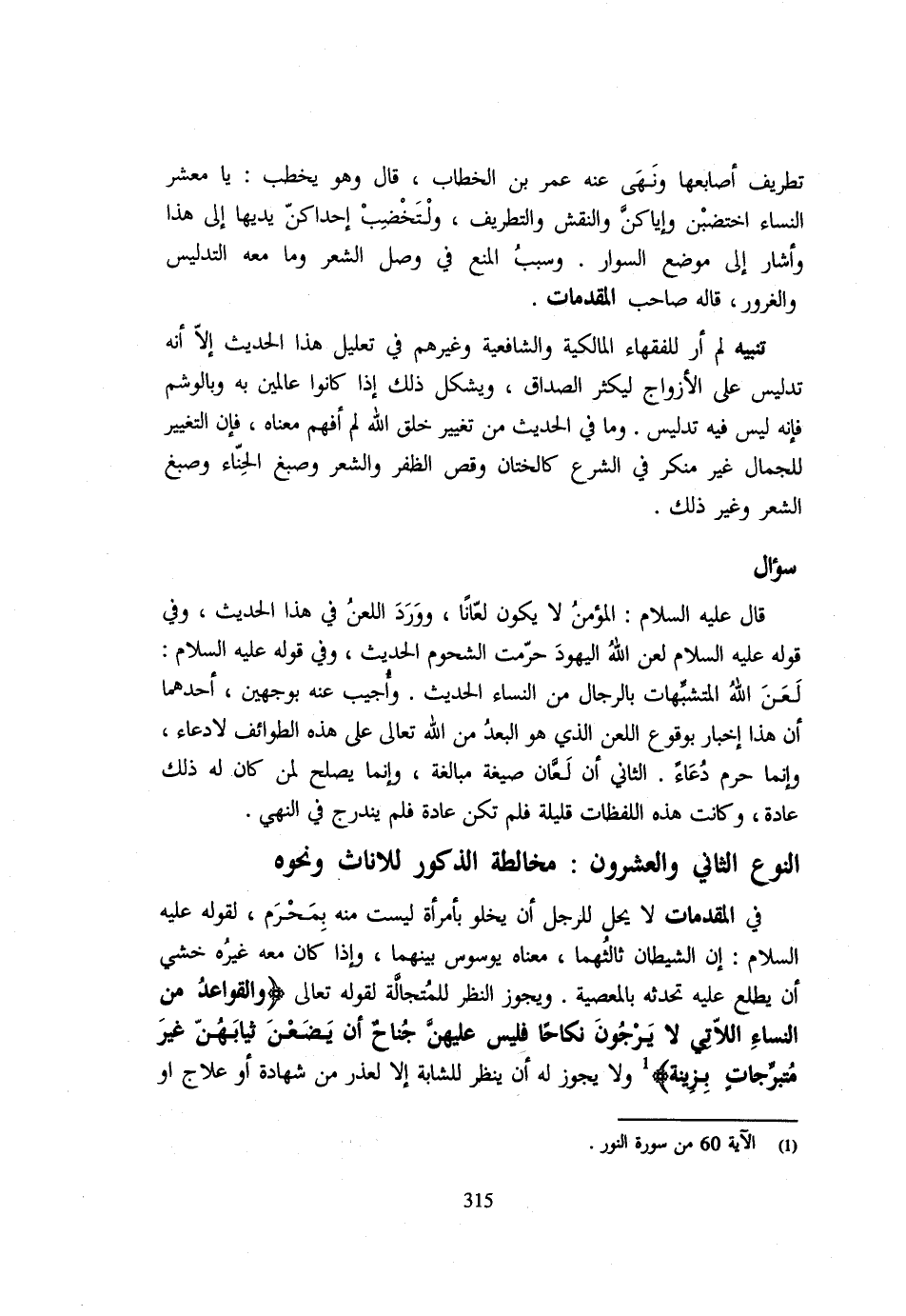 (النَّوْع الثَّانِي وَالْعشْرُونَ مُخَالطَة الذُّكُور للإناث وَنَحْوِهِ)