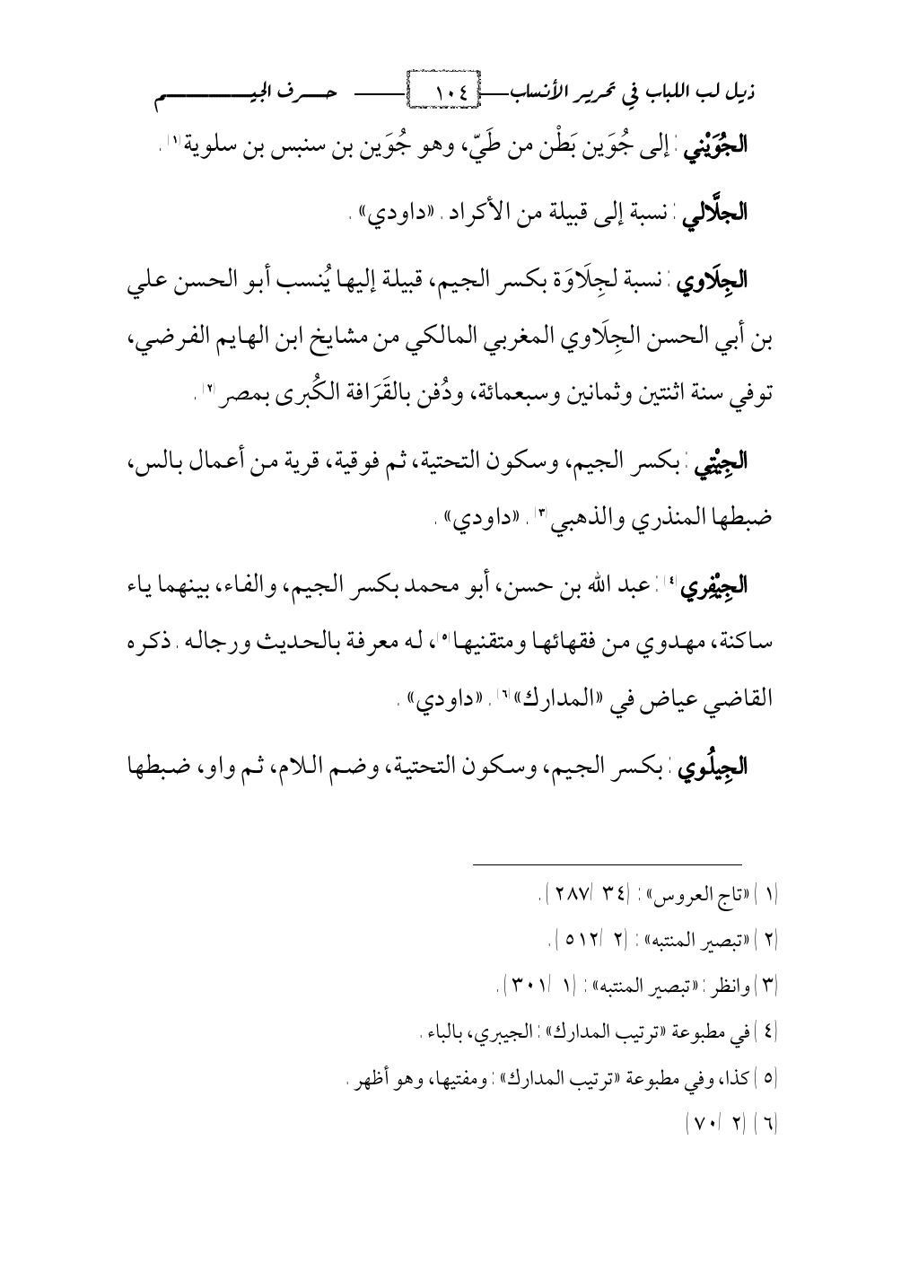 الجِيلي: إلى قرية على شاطئ دِجْلة يقال لها كيل، وإلى جيل رجل كان أخا ديلم، عُرف بذلك أبو الحسن قابوس بن أبي طاهر وشكمير (¬2) الجيلي أمير جُرْجَان. ذكره ابن خلكان (¬3). «داودي».