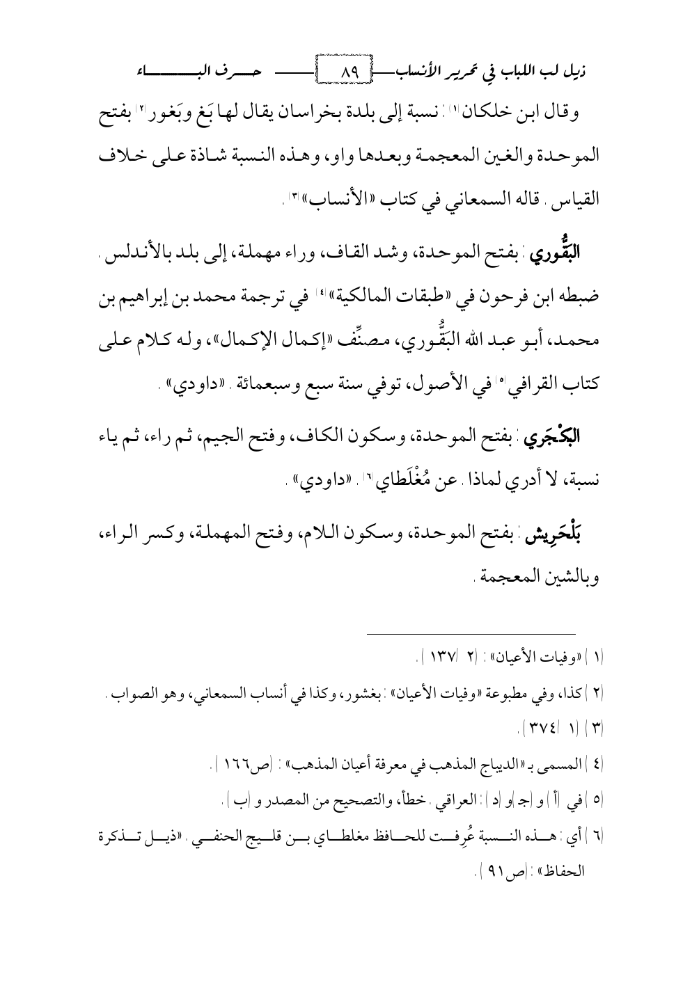 (¬2) ومع ذلك فقد ضبط ناسخ النسخة (أ) النسبة بالحركات فوضع على الباء حركة «الفتح» وهذا يدل على غفلته الشديدة.