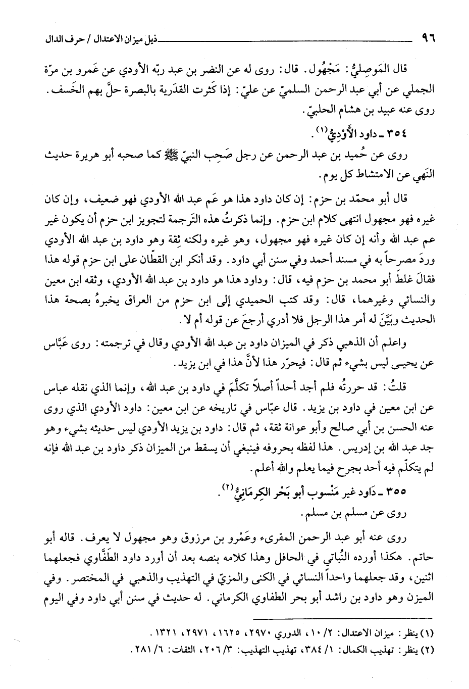 قلت قد حررته فَلم أجدا أصلا تكلم فِي دَاوُد بن عبد الله وَإِنَّمَا الَّذِي نَقله عَبَّاس عَن ابْن معِين فِي دَاوُد بن يزِيد قَالَ عَبَّاس فِي تَارِيخه عَن ابْن معِين دَاوُد الأودي الَّذِي روى عَنهُ الْحسن بن أبي صَالح وَأَبُو عوَانَة ثِقَة ثمَّ قَالَ دَاوُد بن يزِيد لَيْسَ حَدِيثه بِشَيْء وَهُوَ جد عبد الله بن إِدْرِيس هَذَا لَفظه بِحُرُوفِهِ فَيَنْبَغِي أَن يسْقط من الْمِيزَان ذكر دَاوُد بن عبد الله فَإِنَّهُ لم يتَكَلَّم فِيهِ أحد بِجرح فِيمَا يعلم وَالله أعلم