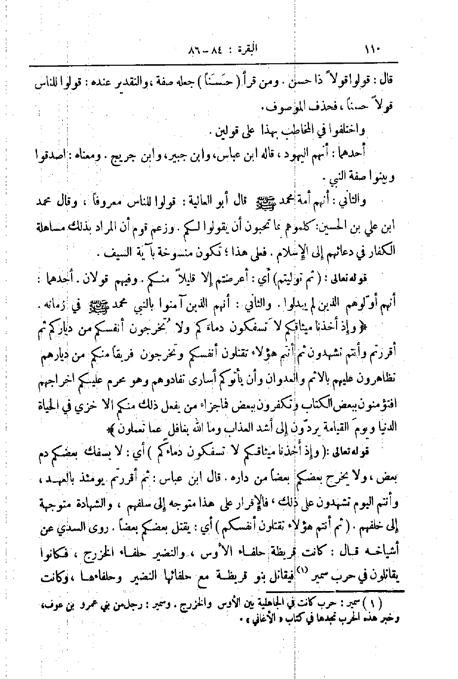 والثاني انهم أمة محمد صلى الله عليه و سلم قال أبوالعالية قولوا للناس معروفا وقال محمد ابن علي بن الحسين كلموهم بما تحبون أن يقولوا لكم و زعم قوم ان المراد بذلك مساهلة الكفار في دعائهم الى الإسلام فعلى هذا تكون منسوخة بآية السيف