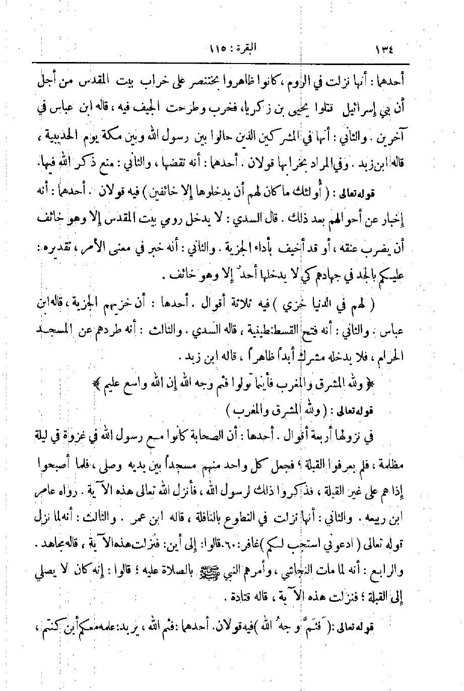 في نزولها اربعة أقوال أحدها أن الصحابة كانوا مع رسول الله في غزوة في ليلة مظلمة فلم يعرفوا القبلة فجعل كل واحد منهم مسجدا بين يديه وصلى فلما أصبحوا إذا هم على غير القبلة فذكروا ذلك لرسول الله فأنزل الله تعالى هذه الآية رواه عامر ابن ربيعه والثاني أنها نزلت في التطوع بالنافلة قاله ابن عمر والثالث أنه لما نزل قوله تعالى ادعوني استجب لكم غافر 60 قالوا الى أين فنزلت هذه الآية قاله مجاهد