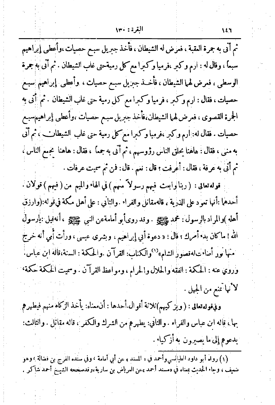 قوله تعالى ربنا وابعث فيهم رسولا منهم في الهاء والميم من فيهم قولان أحدهما أنها تعود على الذرية قاله مقاتل والفراء والثاني على أهل مكة في قوله وارزق أهله والمراد بالرسول محمد صلى الله عليه و سلم وقد روى أبو أمامة عن النبي صلى الله عليه و سلم أنه قيل يا رسول الله ما كان بدء أمرك قال دعوة أبي إبراهيم وبشري عيسى ورأت أمي أنه خرج منها نور أضاءت له قصور الشام والكتاب القرآن والحكمة السنة قاله ابن عباس وروي عنه الحكمة الفقه والحلال والحرام ومواعظ القرأن وسميت الحكمة حكمة لأنها تمنع من الجهل