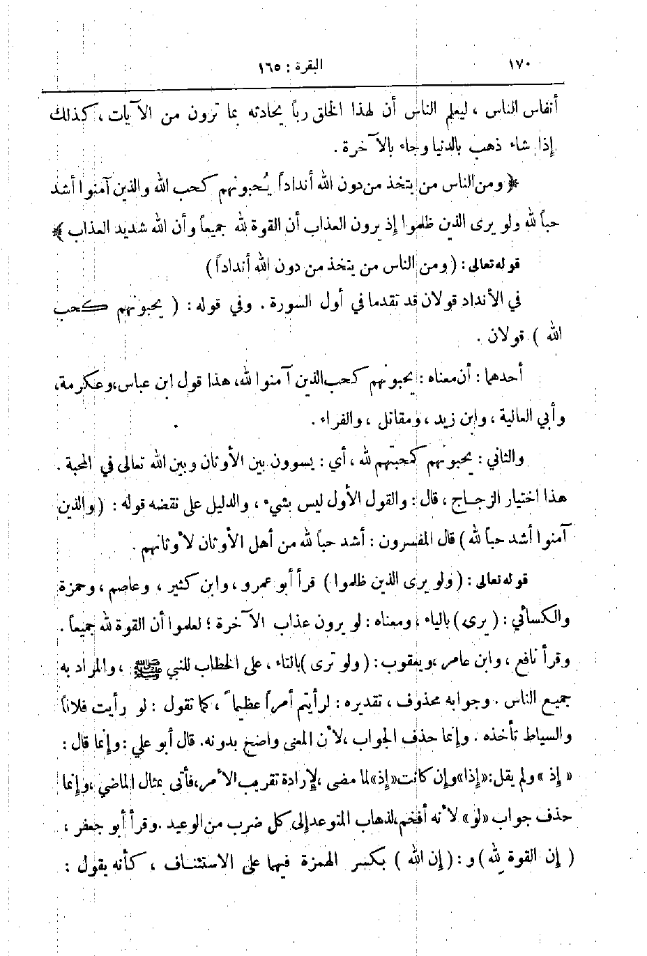 ومن الناس من يتخذ من دون الله أندادا بحبونهم كحب الله والذين آمنوا أشد حبا لله ولو يرى الذين ظلموا إذ يرون العذاب أن القوة لله جميعا و أن الله شديد العذاب
