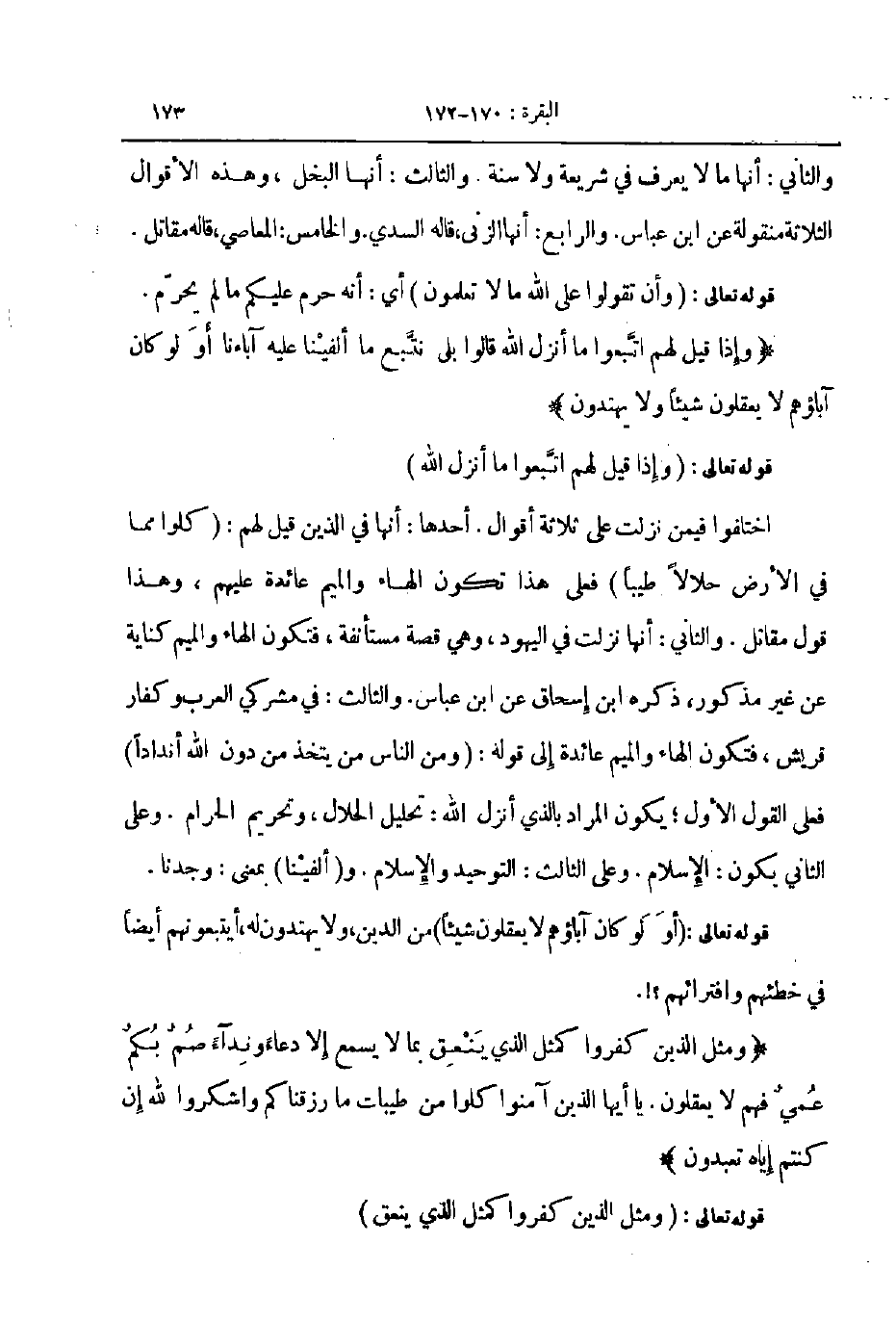 ومثل الذين كفروا كمثل الذي ينعق بما لا يسمع إلا دعاء ونداء صم بكم عمي فهم لا يعقلون ياأيهاالذين آمنونا كلوا من طيبات ما رزقناكم واشكروا لله إن كنتم إياه تعبدون