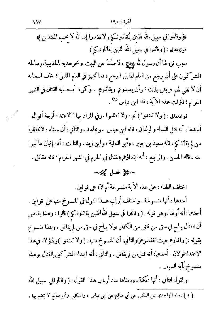 قوله تعالى وقاتلوا فس سبيل الله الذين يقاتلونكم