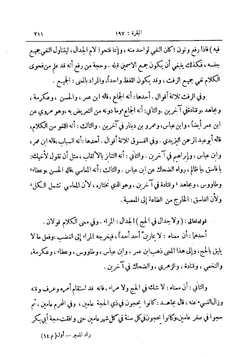 والثاني أن معناه لا شك في الحج ولا مراء فانه قد استقام أمره وعرف وقته وزال النسيء عنه قال مجاهد كانوا يحجون في ذي الحجة عامين وفي المحرم عامين ثم حجوا في صقر عامين وكانوا يحجون في كل سنة في كل شهر عامين حتى وافقت حجة أبي بكر