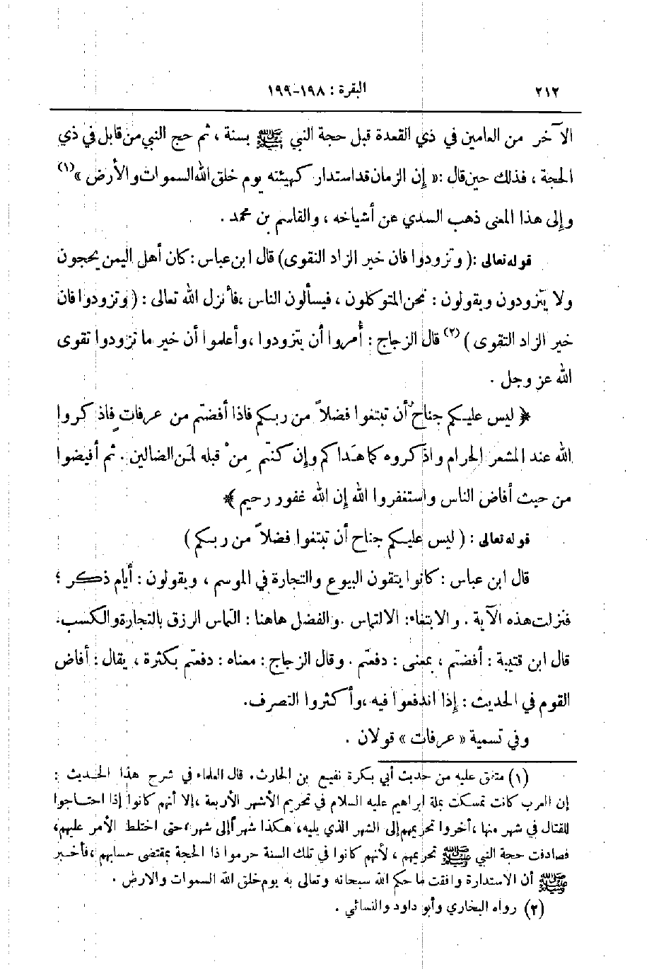 ليس عليكم جناح أن تبتغوا فضلا من ربكم فاذا أفضتم من عرفات فاذكروا الله عند المشعر الحرم واذكروه كما هداكم و إن كنتم من قبله لمن الضالين ثم أفيضوا من حيث أفاض الناس واستغفروا الله إن الله غفور رحيم