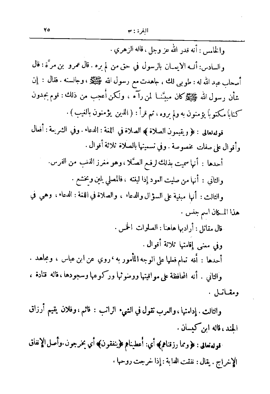 قوله تقالى ويقيمون الصلاة الصلاة في اللغة الدعاء وفي الشريعة أفعال وأقوال على صفات مخصوصة وفي تسميتها بالصلاة ثلاثة أقوال