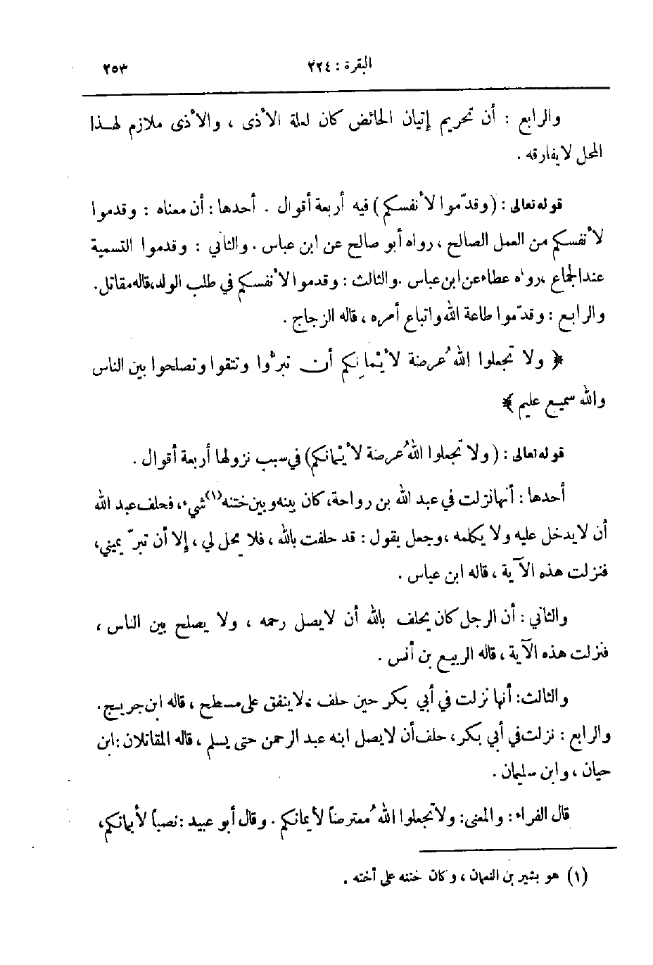 قوله تعالى ولا تجلعوا الله عرضة لأيمانكم في سبب نزولها اربعة أقوال